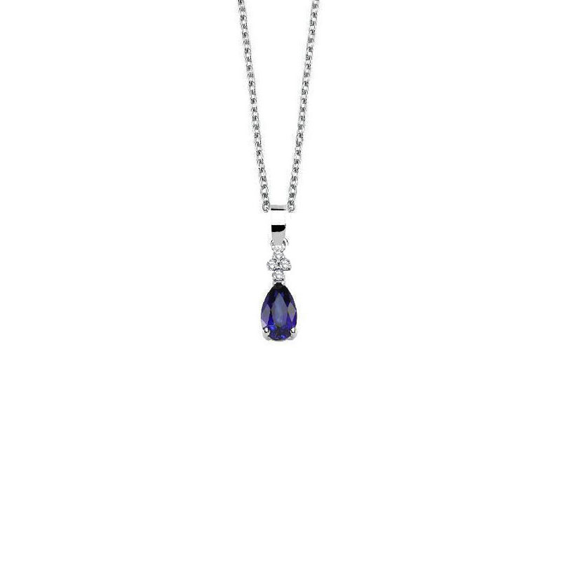 0.02ct Pırlantalı Damla Safir Taşlı Kolye