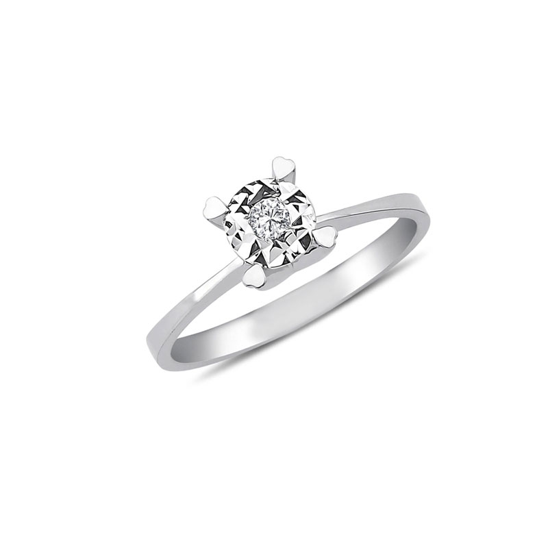 8K BEYAZ ALTIN EFECTLİ PIRLANTA TEKTAŞ YÜZÜK