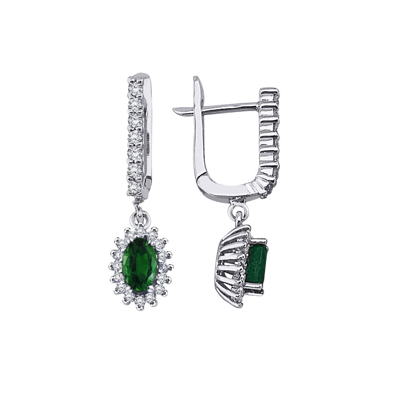 14K BEYAZ ALTIN PIRLANTALI ZÜMRÜT TAŞLI KÜPE