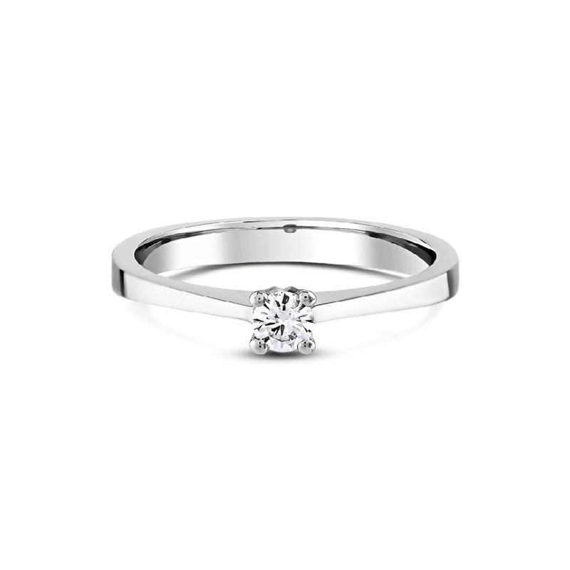 14K BEYAZ ALTIN PIRLANTA TEKTAŞ YÜZÜK