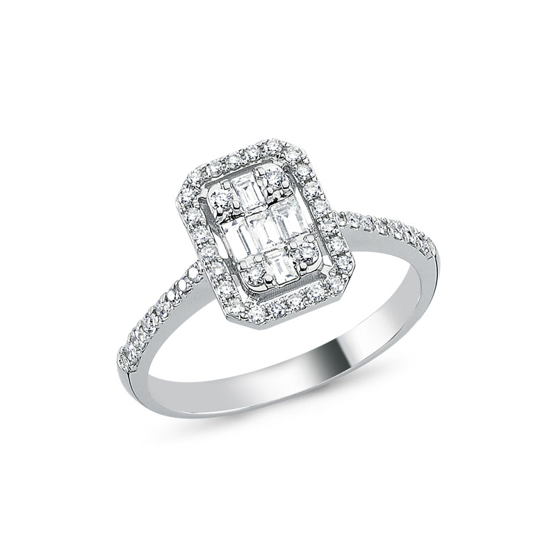 14K BEYAZ ALTIN PIRLANTA BAGET YÜZÜK