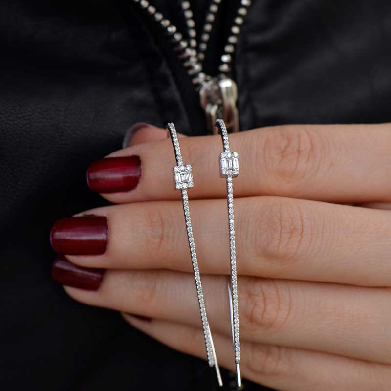 0.80ct Baget Pırlanta Sarkıt Küpe