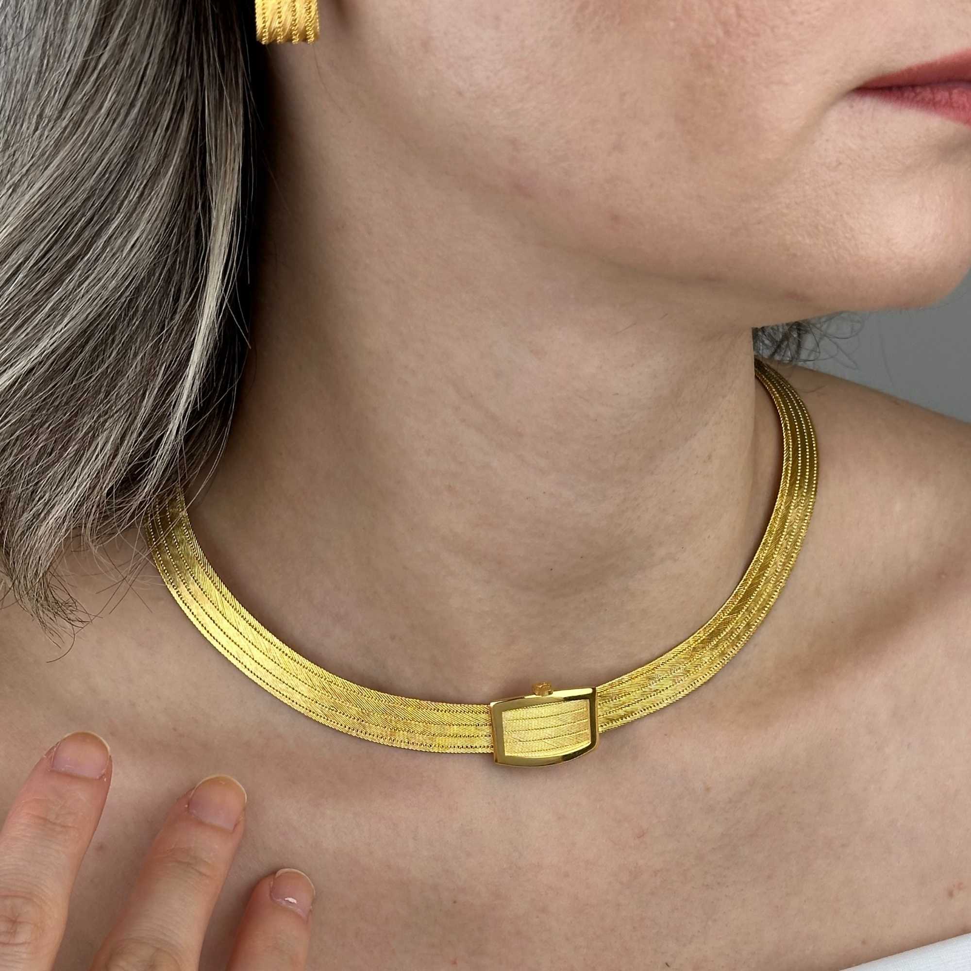 Bu 14 ayar altın Trabzon gerdanlık, 5 sıra hasır örgü tekniği ile elde üretilmiştir. Trabzon hasır gerdanlık formu, boynu daha zarif ve güçlü gösterirken, sarı altın rengi zamansız bir ışıltı sağlar. Taşsız yapısı sayesinde hem günlük kullanımda hem de şık davetlerde rahatlıkla kullanılabilir. Trabzon kolye kategorisinde yer alan bu model, yatırım değeri taşıyan gramajı ve prestijli görünümü ile koleksiyonluk bir parçadır. El işçiliğiyle üretilmiş 5 sıra gerdanlık yapısı, ürünü sıradan kolyelerden ayırır ve daha güçlü bir duruş kazandırır.