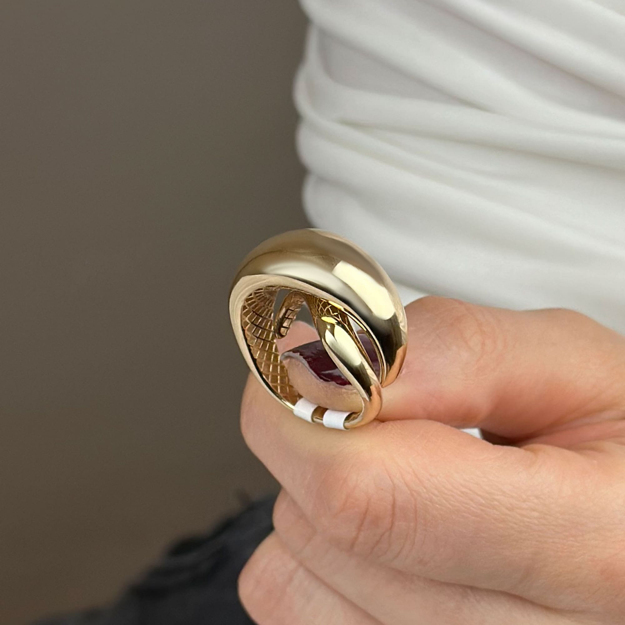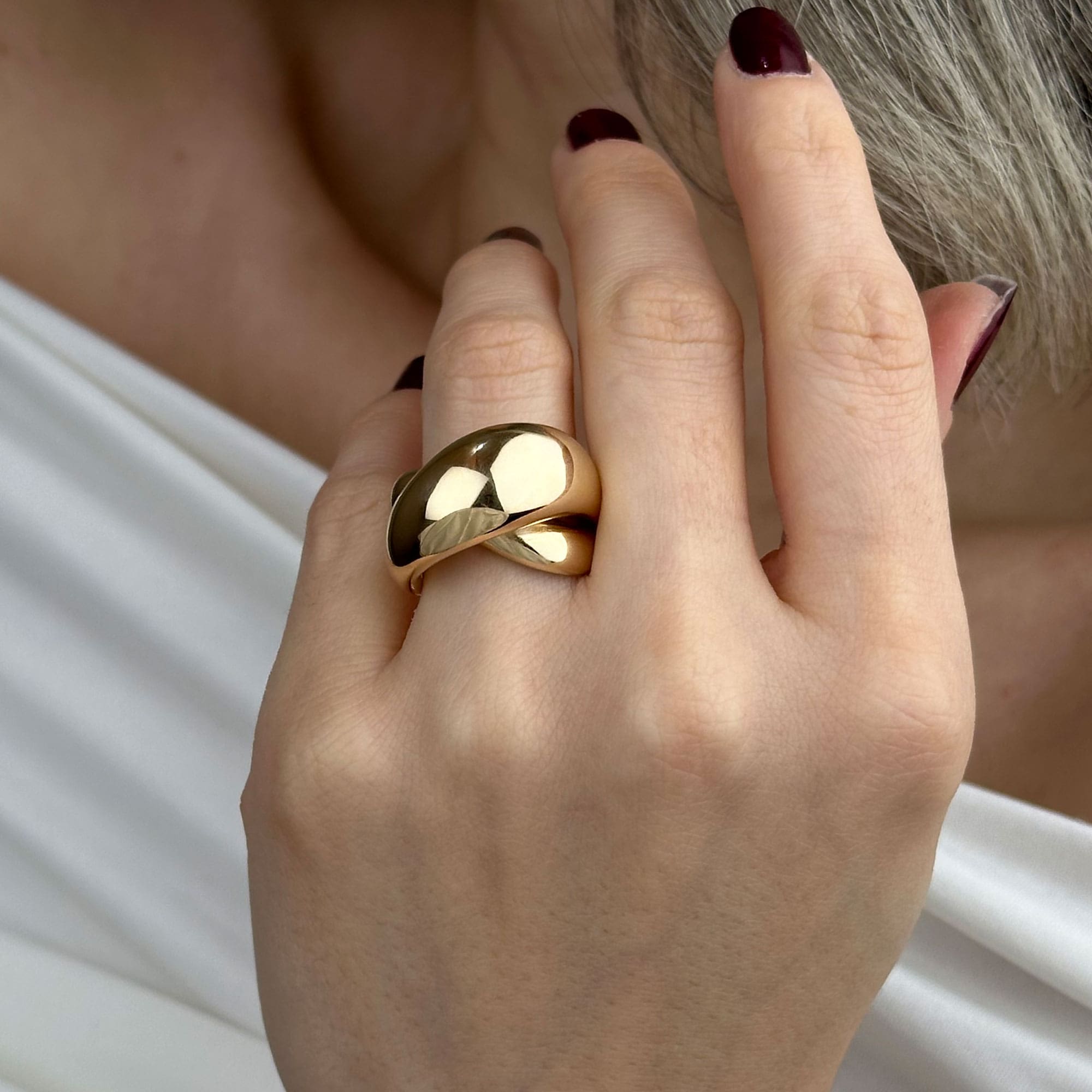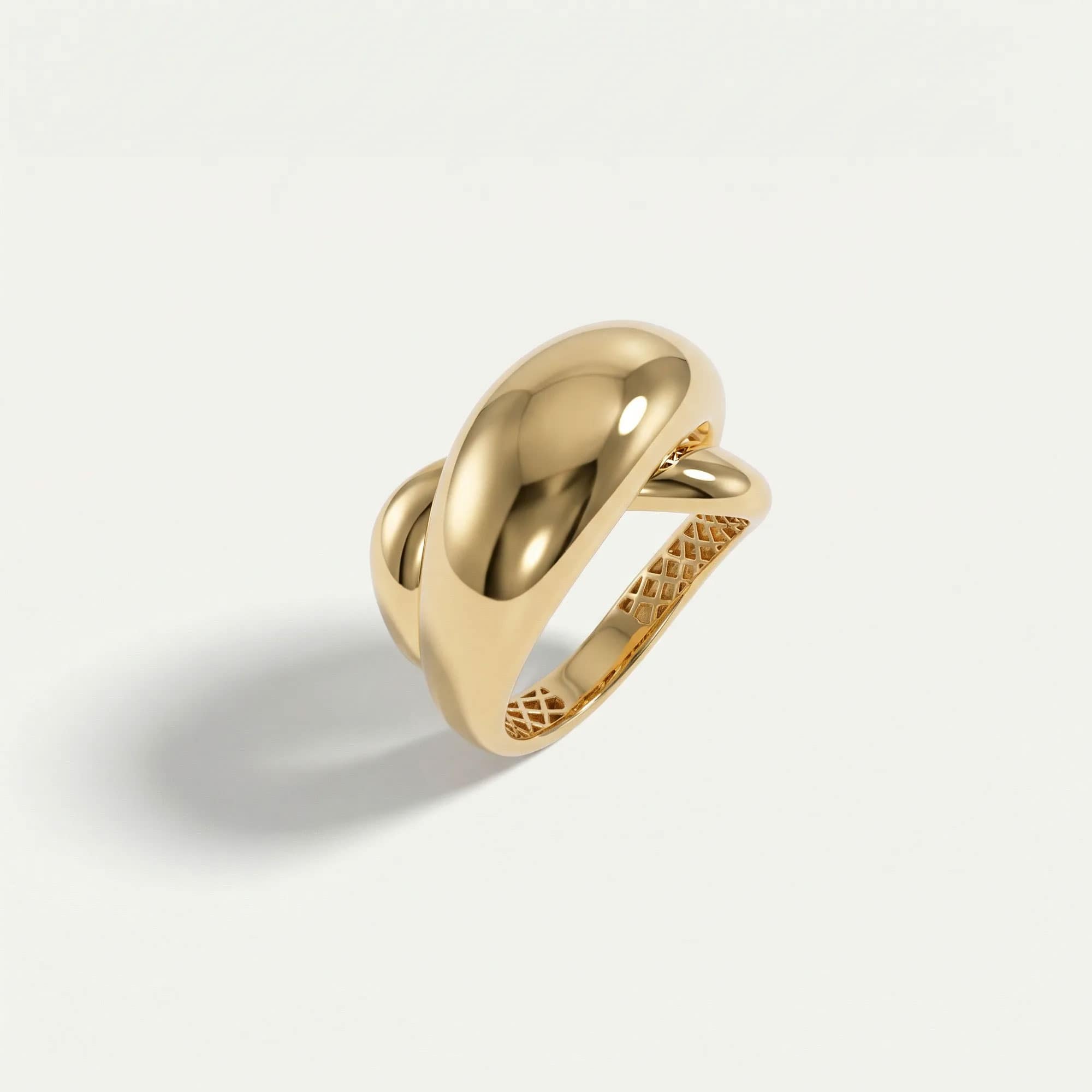 Zamansız formu ve sade duruşuyla bombe yüzük, stilini gösterişten uzak bir zarafetle tamamlar.