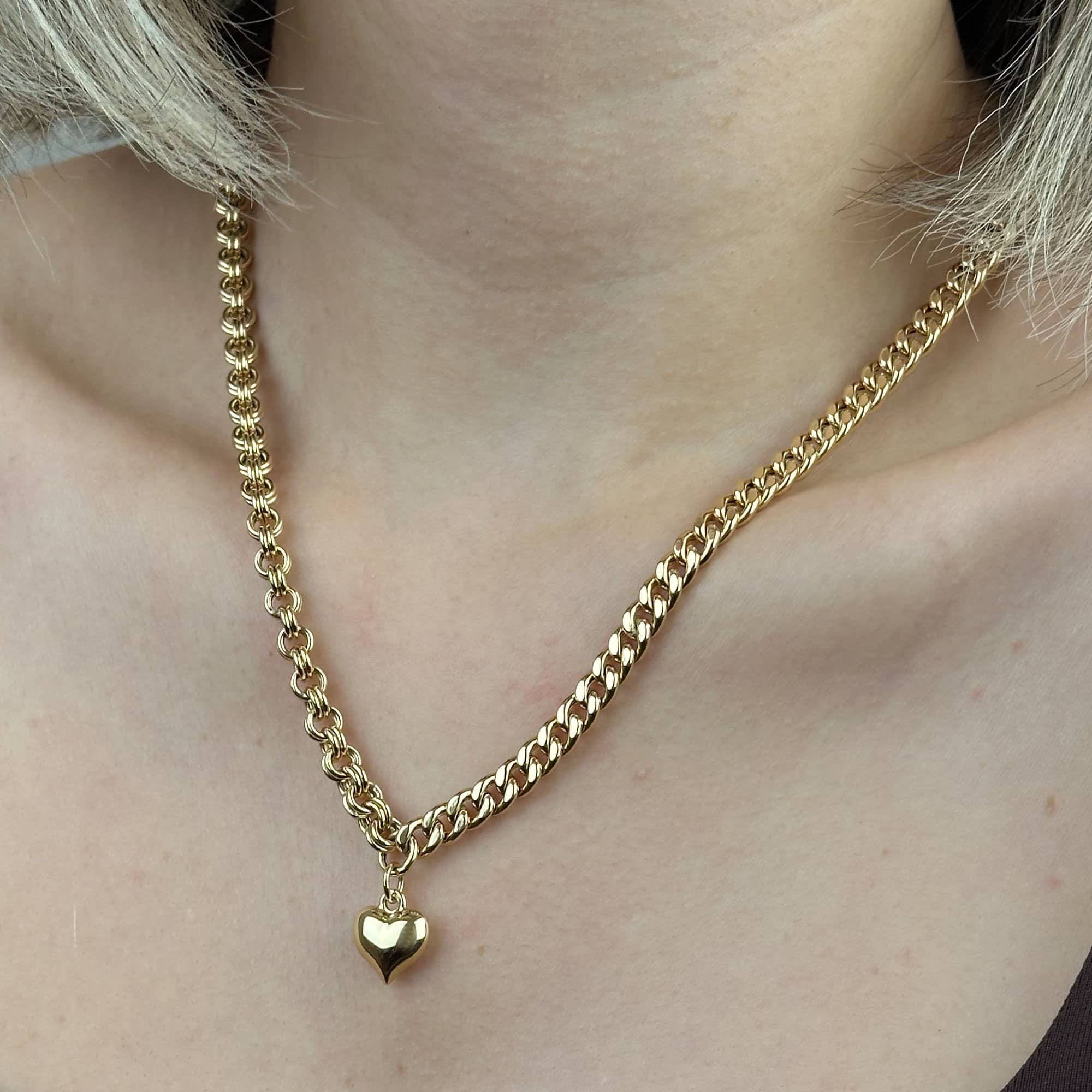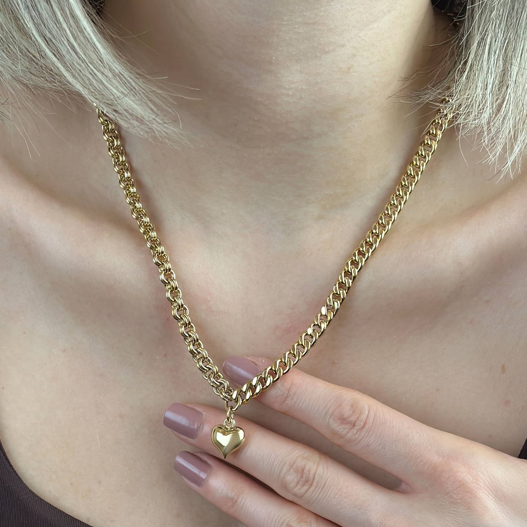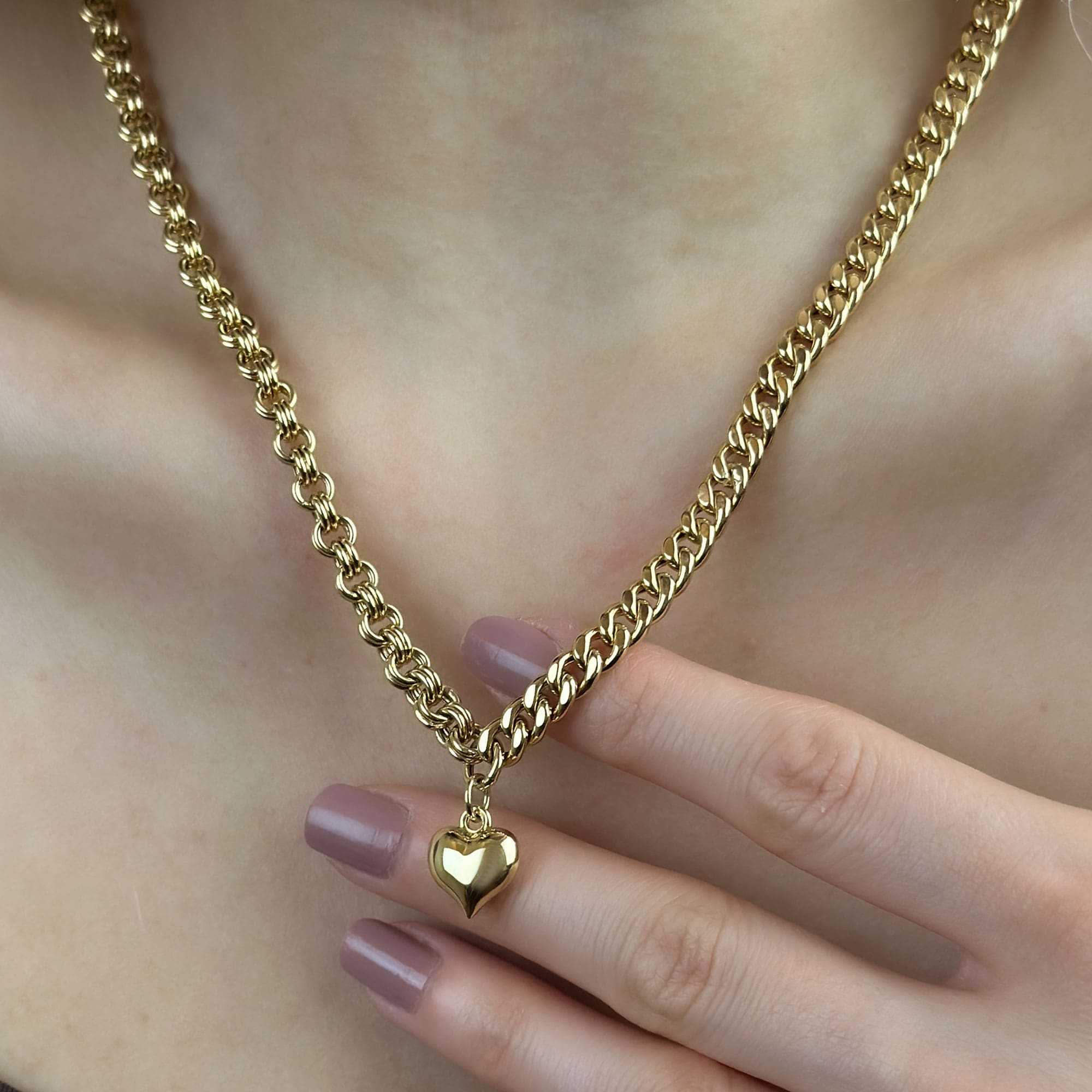 14 ayar altının ışıltısını romantik bir dokunuşla buluşturan Gurmet Zincir Kalp Uçlu Kolye, zarafeti ve modern şıklığı bir araya getiriyor. Günlük kullanımda sade bir şıklık sunarken özel günlerde de kusursuz bir tamamlayıcı olarak öne çıkar. Parlak kalp ucu detayı, kolyeye hem duygusal bir anlam hem de estetik bir hareket kazandırır.