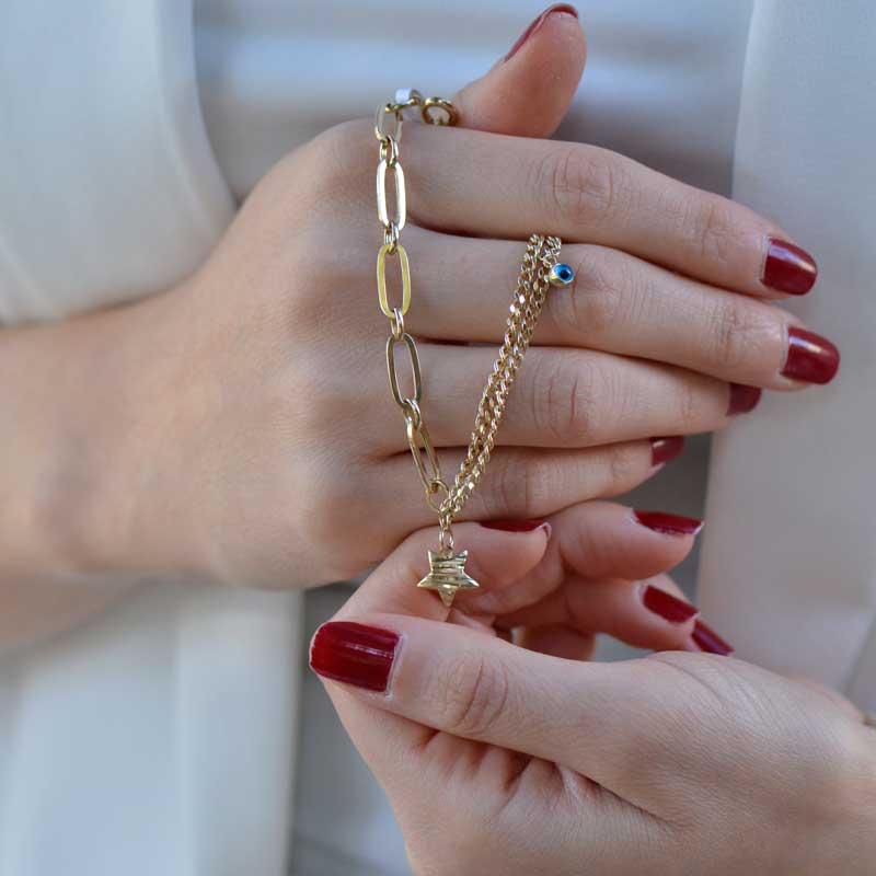Kumlu Renkli Dorika Bileklik – Altın Şık Takı Modeli