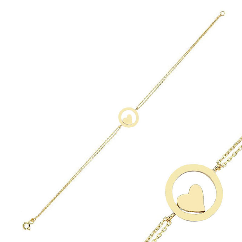 14 Ayar Altın Halkalı Kalp Bileklik