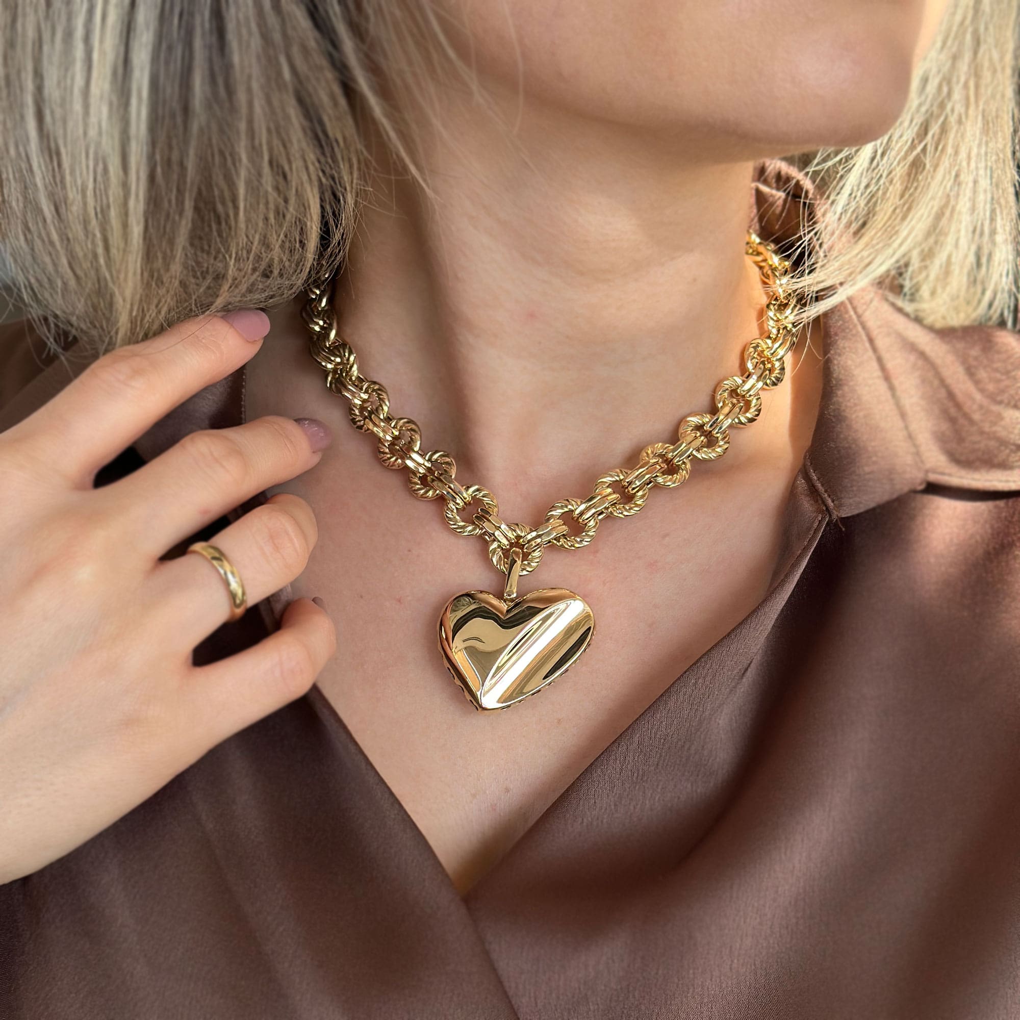 14 ayar altın kalp kolye, zarif ve anlamlı tasarımıyla günlük kullanıma ve özel günlere uygundur. Cetaş kalitesiyle üretilen bu altın kolye, kalp figürü sayesinde sevgi ve şıklığı bir arada sunar. Hafif yapısı sayesinde boyunda konforlu bir kullanım sağlar.