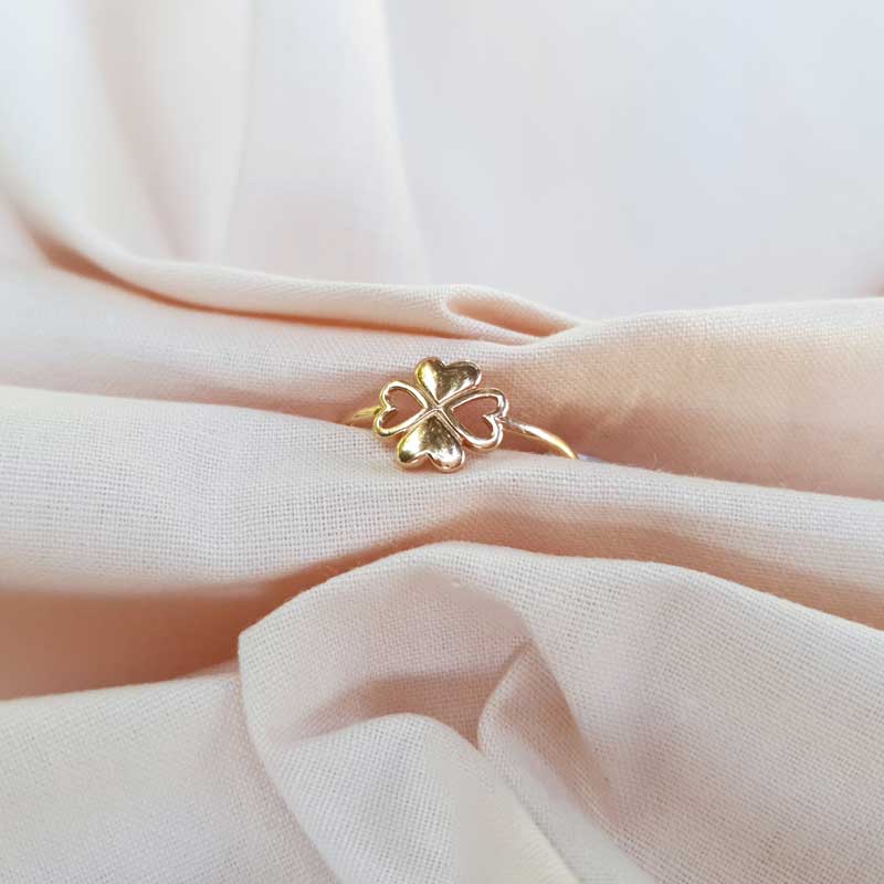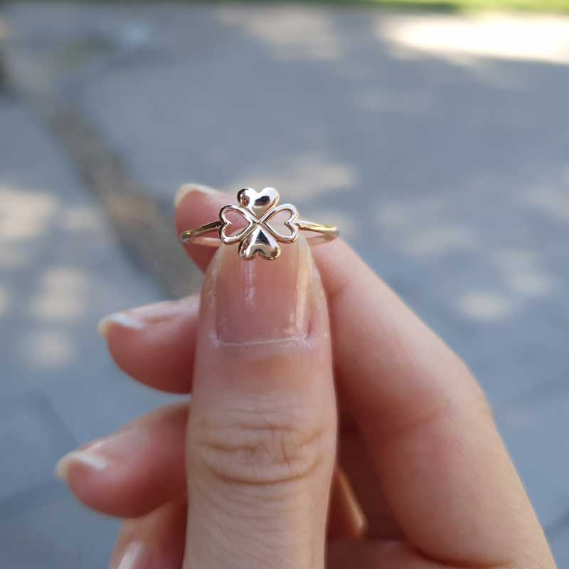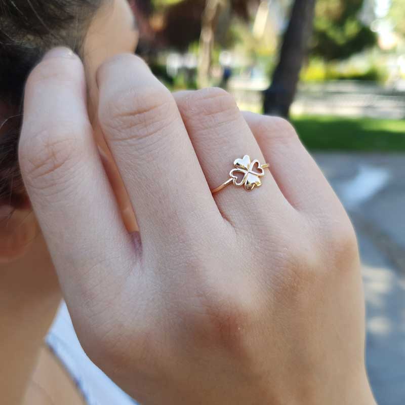 14 Ayar Altın Kalp Yapraklı Yonca Yüzük