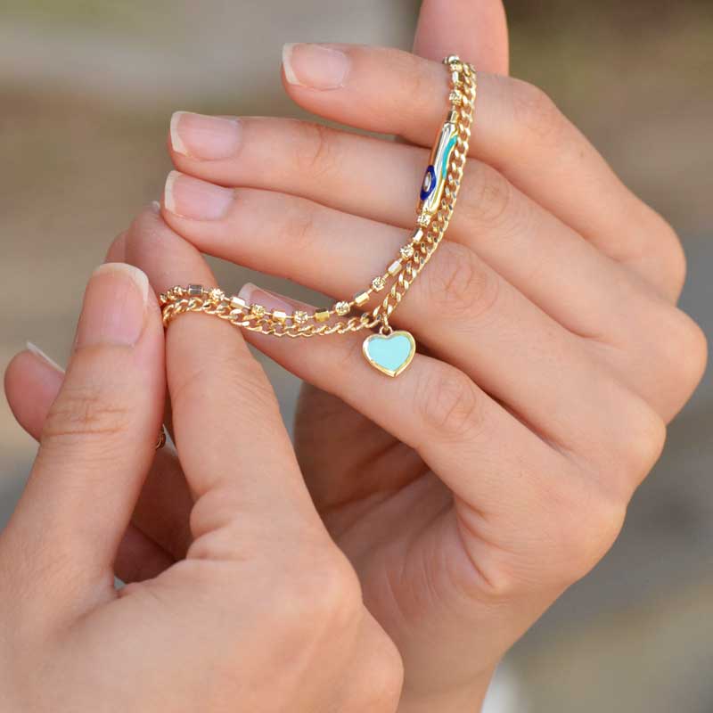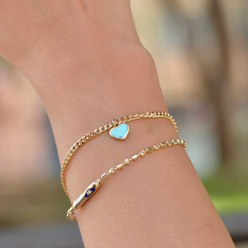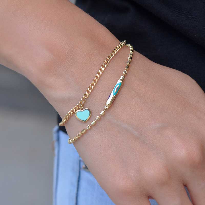 14 Ayar Altın Kalpli Nazarlı Bileklik