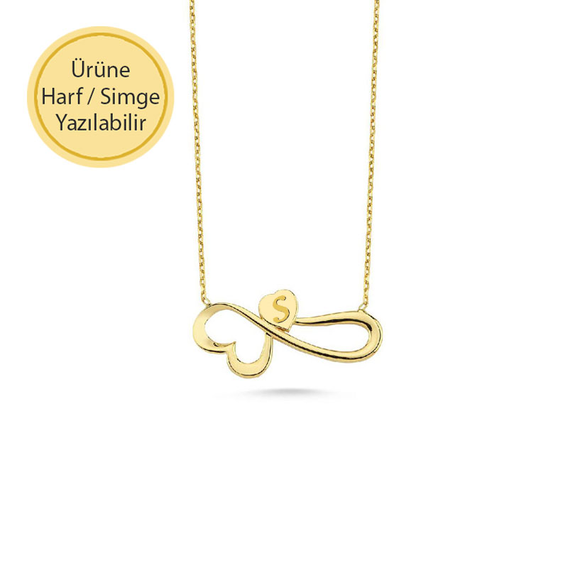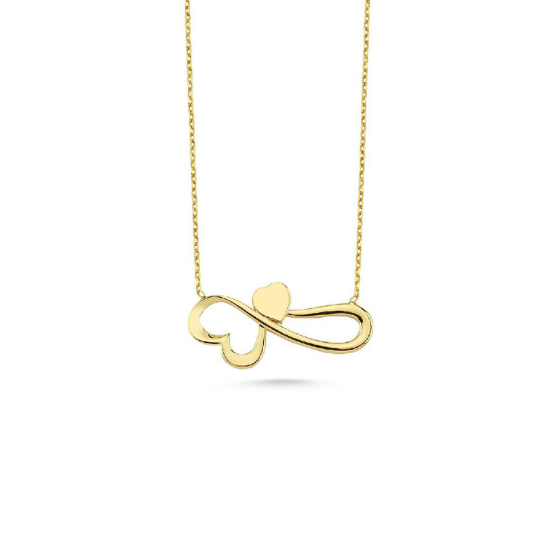 14 Ayar Altın Kalpli Sonsuzluk Kolye