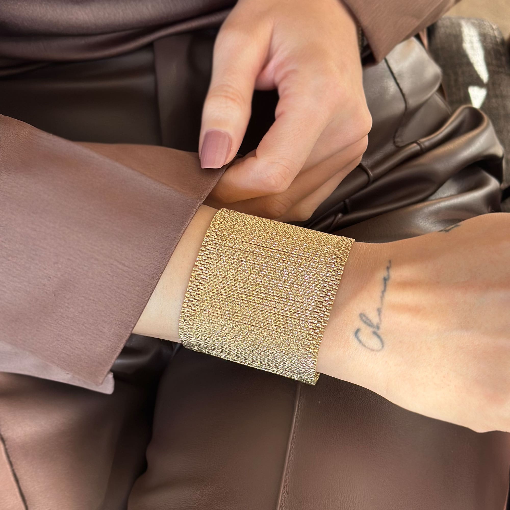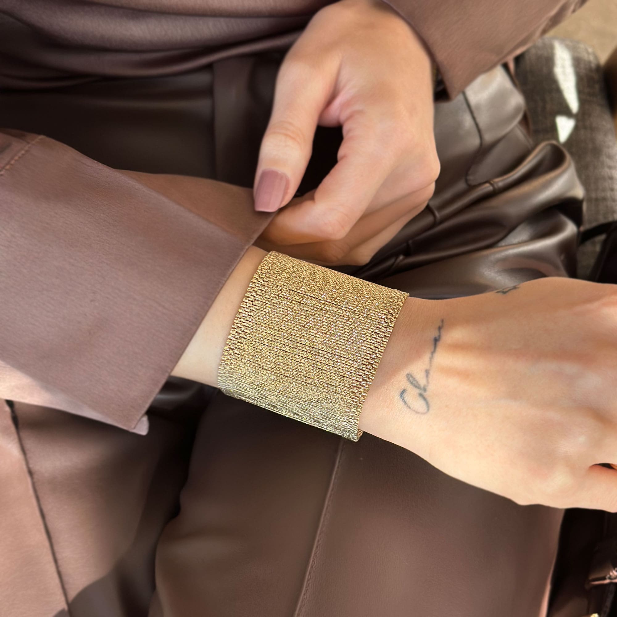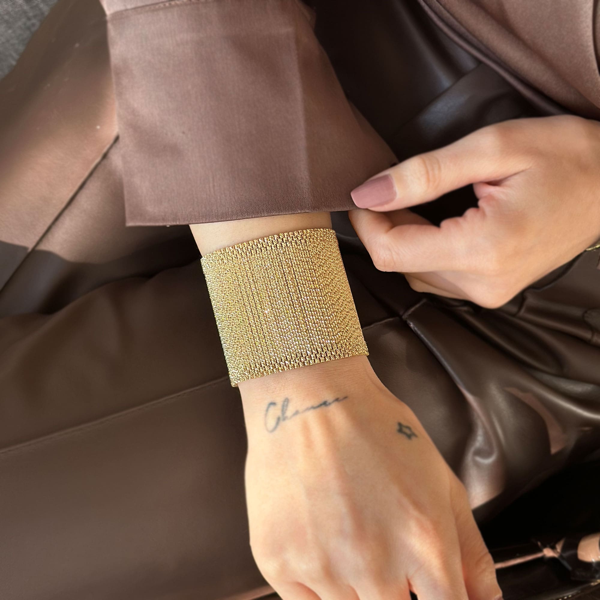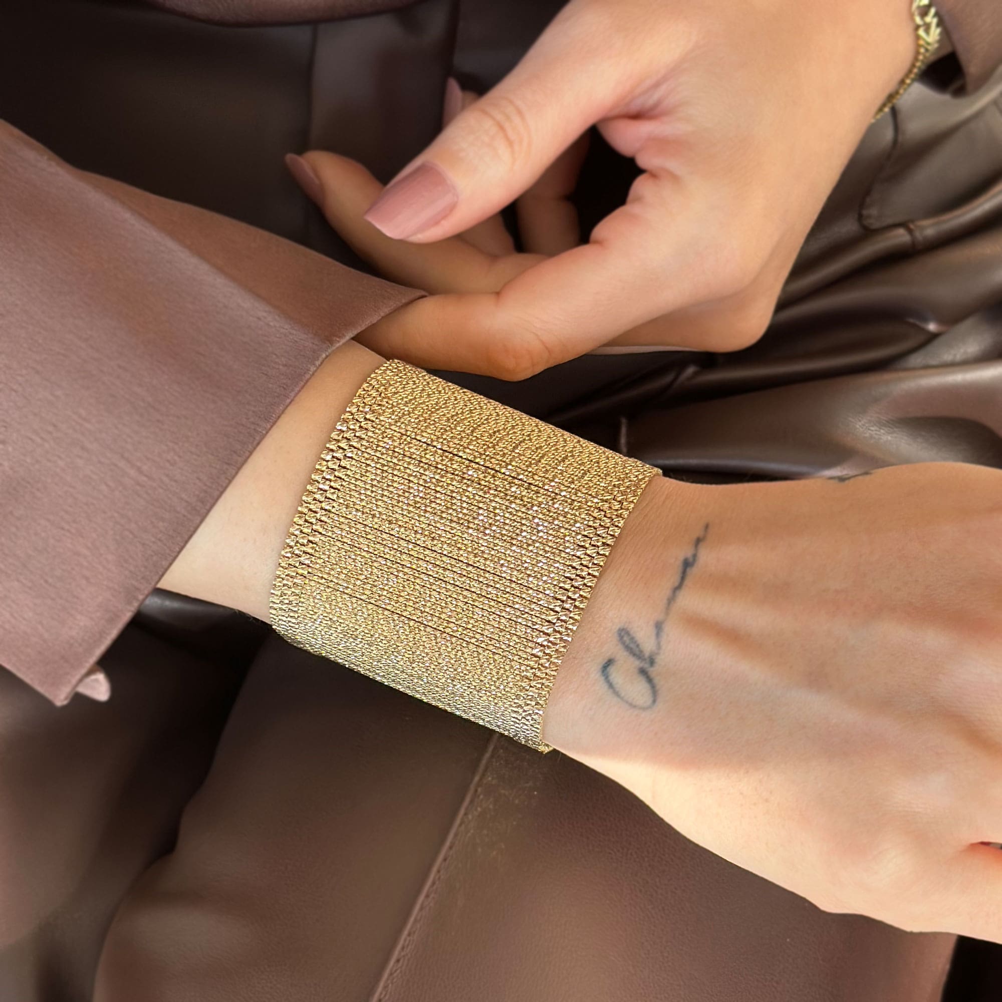 14 ayar altın kullanılarak üretilen Kleopatra hasır bileklik, klasik hasır örgü tekniğini zamansız bir tasarımla birleştirir. Zarif dokusu ve dengeli ağırlığı sayesinde günlük kullanımda konfor sunar. Altının doğal parlaklığı, hasır formun güçlü duruşuyla bütünleşerek hem modern hem geleneksel kombinlere uyum sağlar.