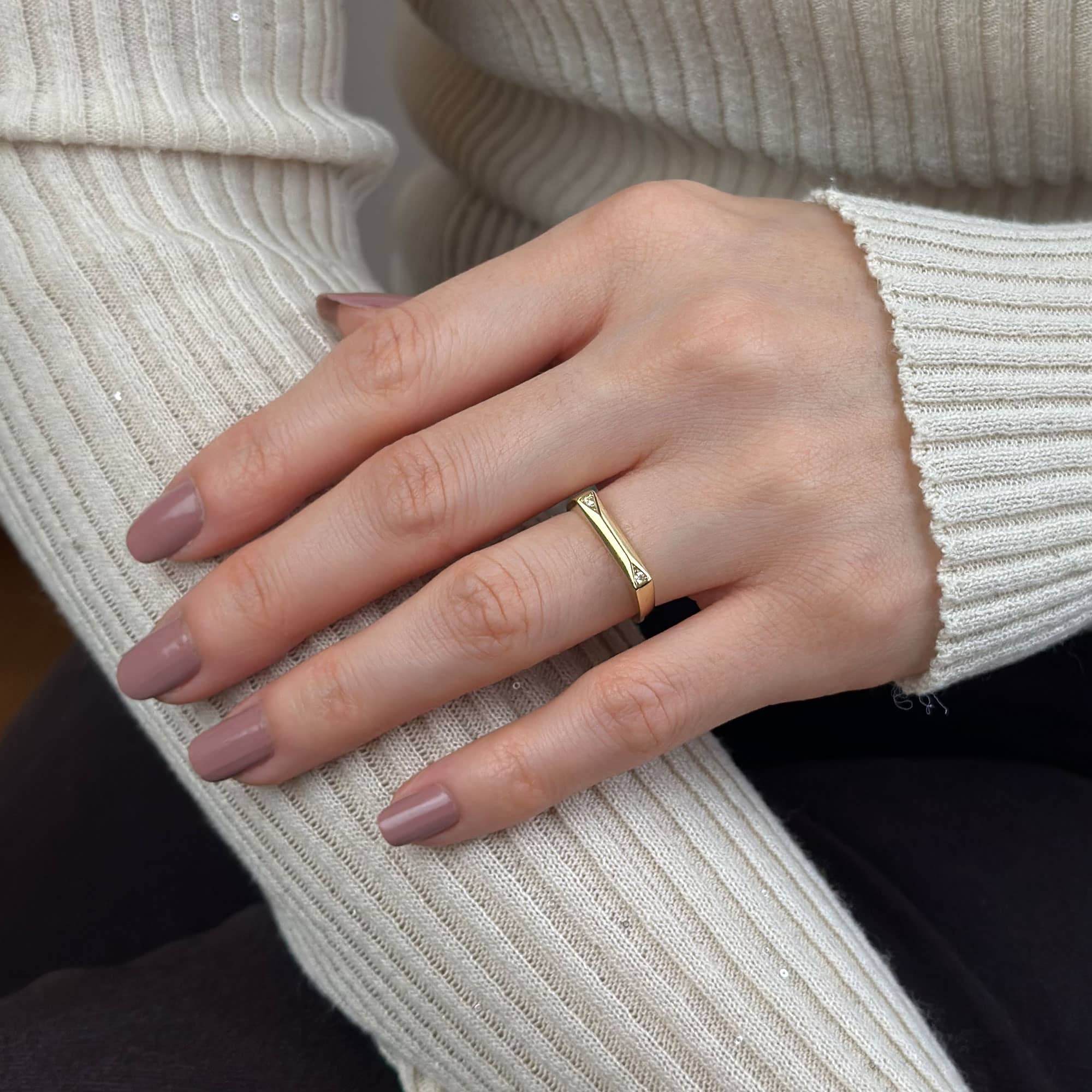 14 ayar altından üretilen bu taşlı yüzük, zarif love tasarım detayıyla romantik ve modern bir şıklık sunar. Günlük kullanımda rahatlıkla tercih edilebilen hafif yapısı, özel günlerde ise anlamlı bir hediye alternatifi oluşturur. Parlak taş detaylarıyla ışığı estetik biçimde yansıtan bu altın yüzük, stiline feminen ve zarif bir dokunuş katar. Kaliteli işçiliği sayesinde uzun ömürlüdür ve kombinlenmesi oldukça kolaydır.