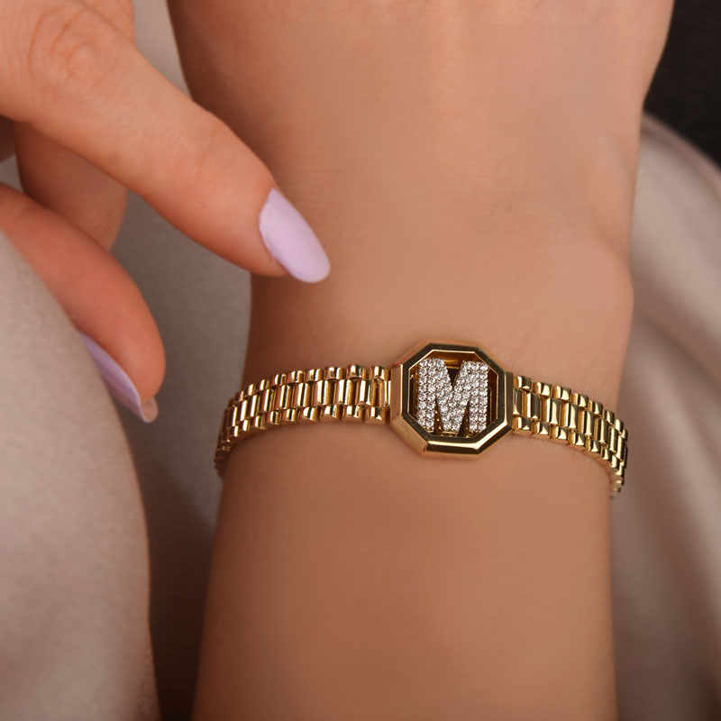 İp örgü 14 Ayar Altın A Harfli Bileklik