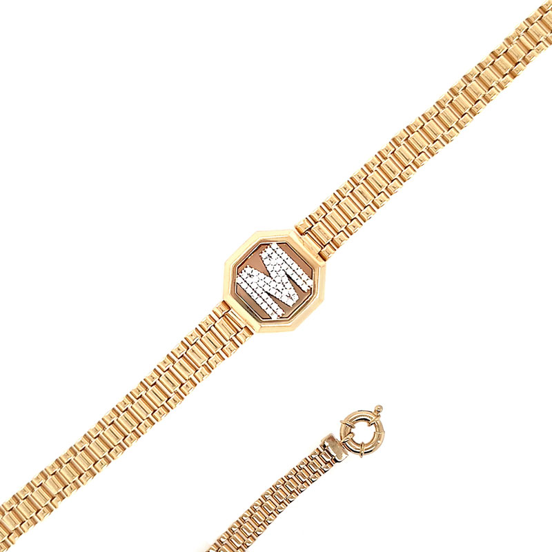 İp örgü 14 Ayar Altın D Harfli Bileklik