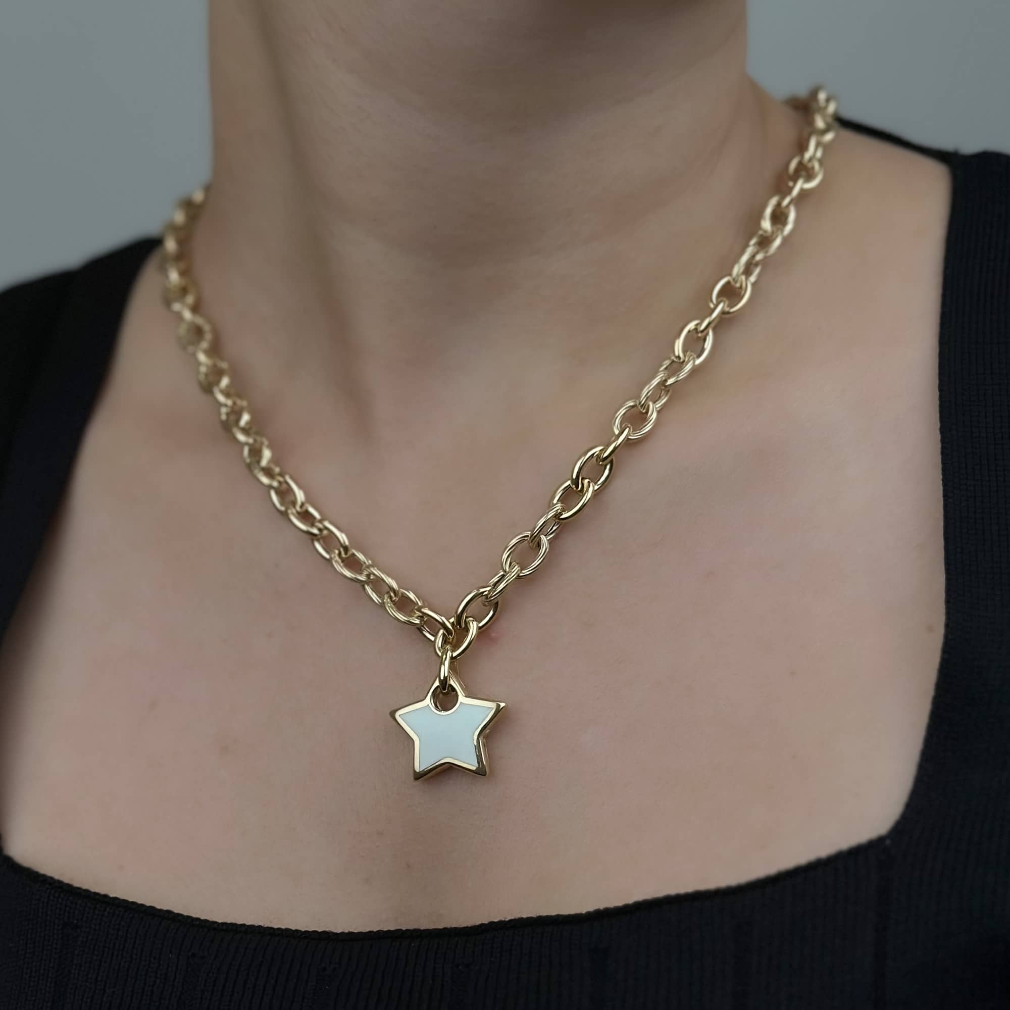 14 Ayar Altın Mineli Yıldız Kolye – Mine Taşlı Şık Model
