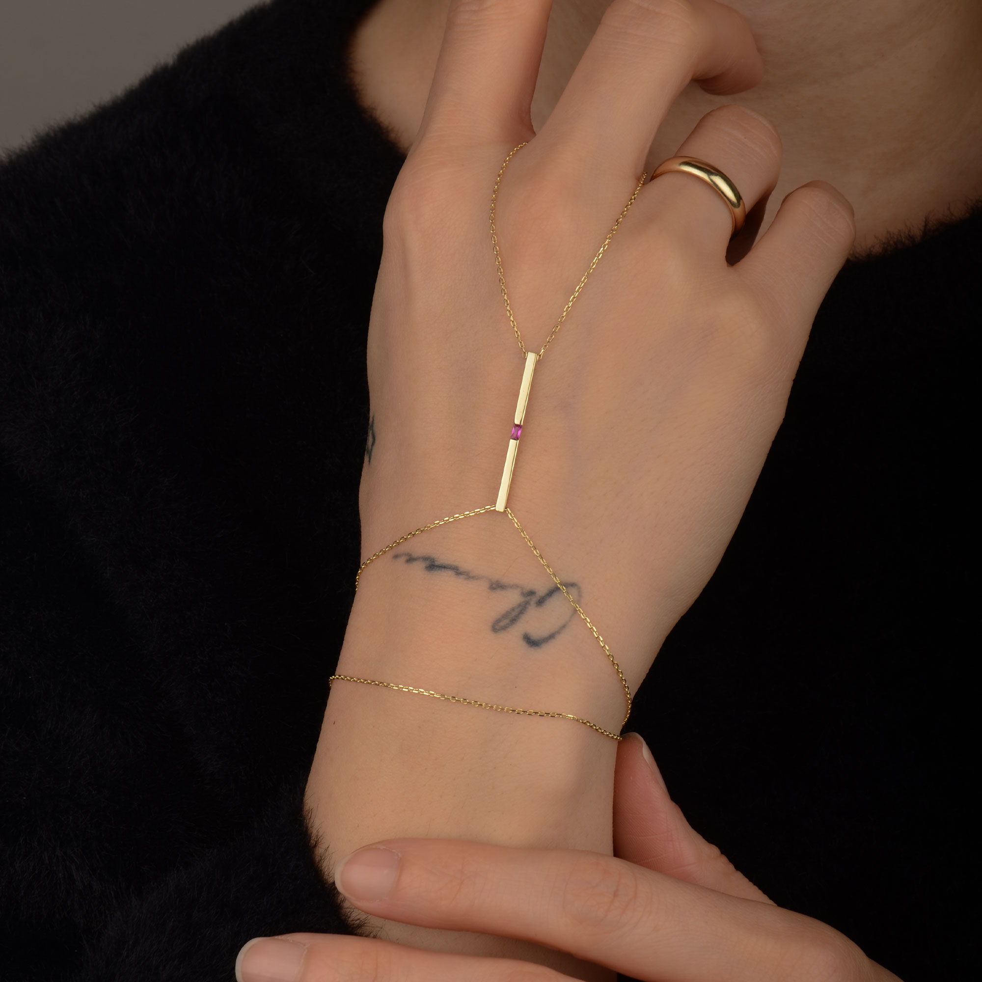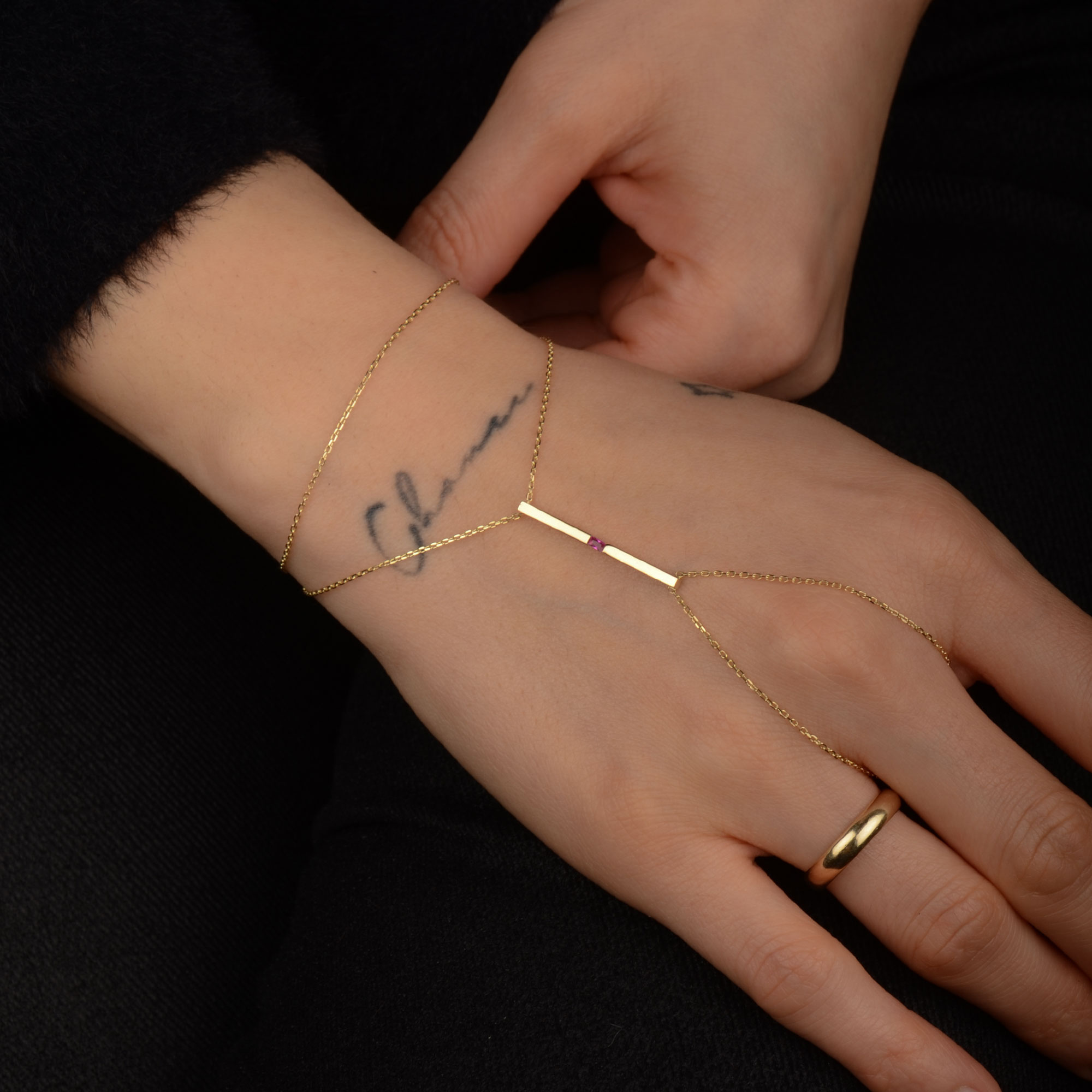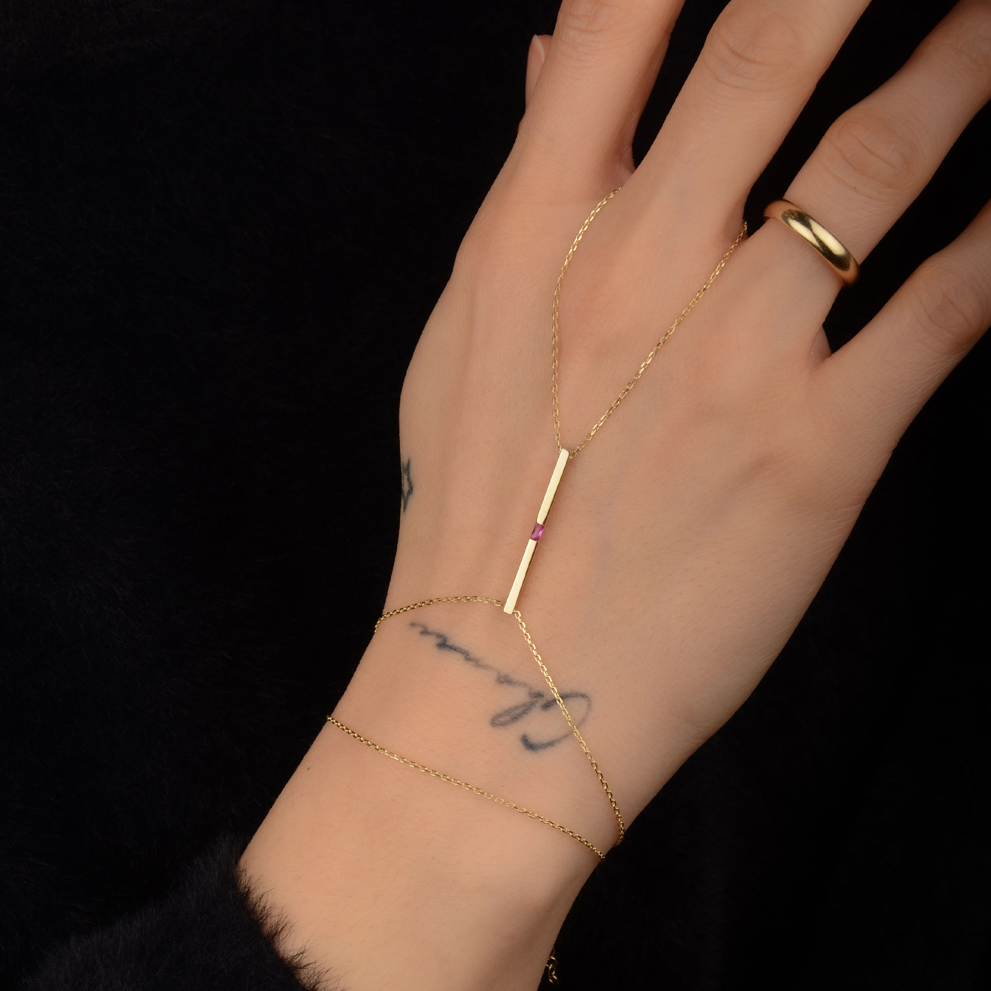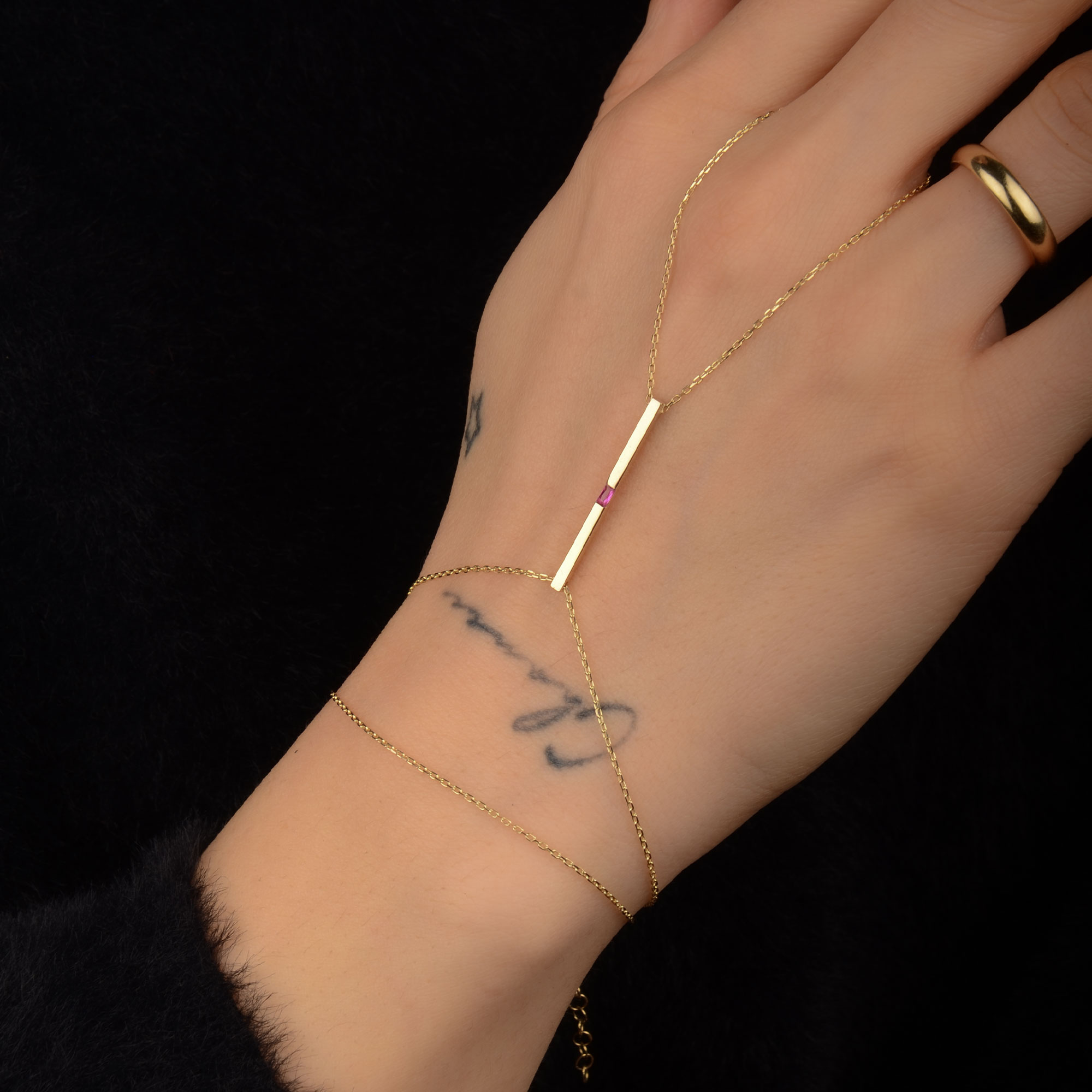 14 Ayar Altın Pembe Taşlı Çubuk Bar Şahmeran