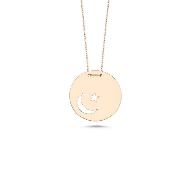 14 Ayar Altın Plaka Ayyıldız Kolye