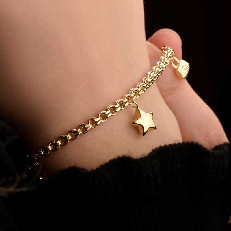 14 Ayar Altın Yıldız Sallantılı Çift Zincir Bileklik