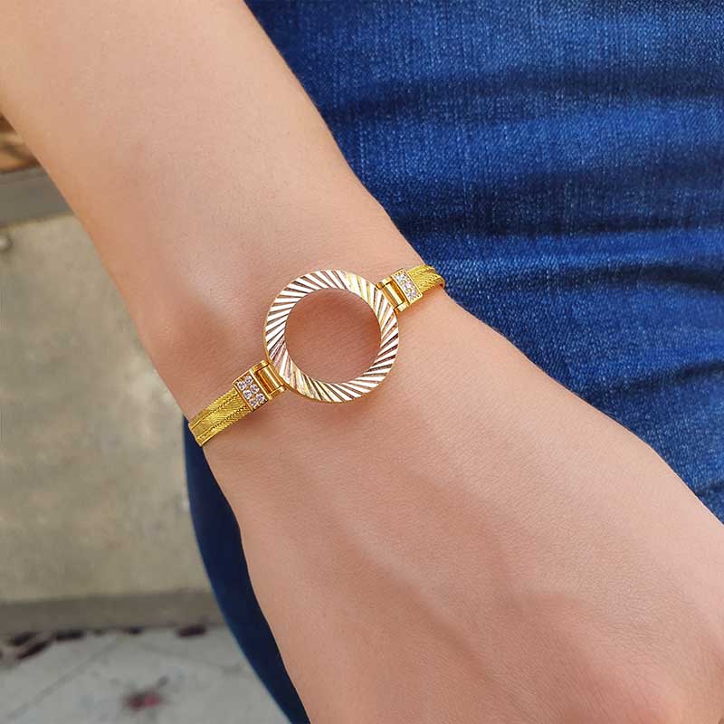 14 Ayar Altın Renkli Taşlı Kilit Gurmet Bileklik