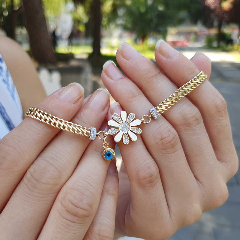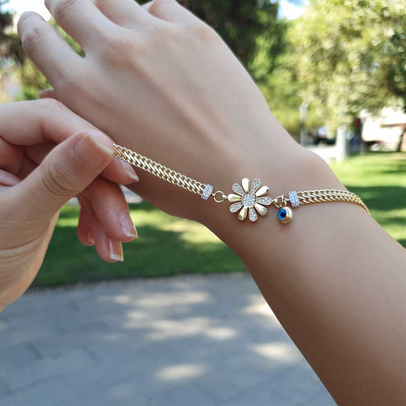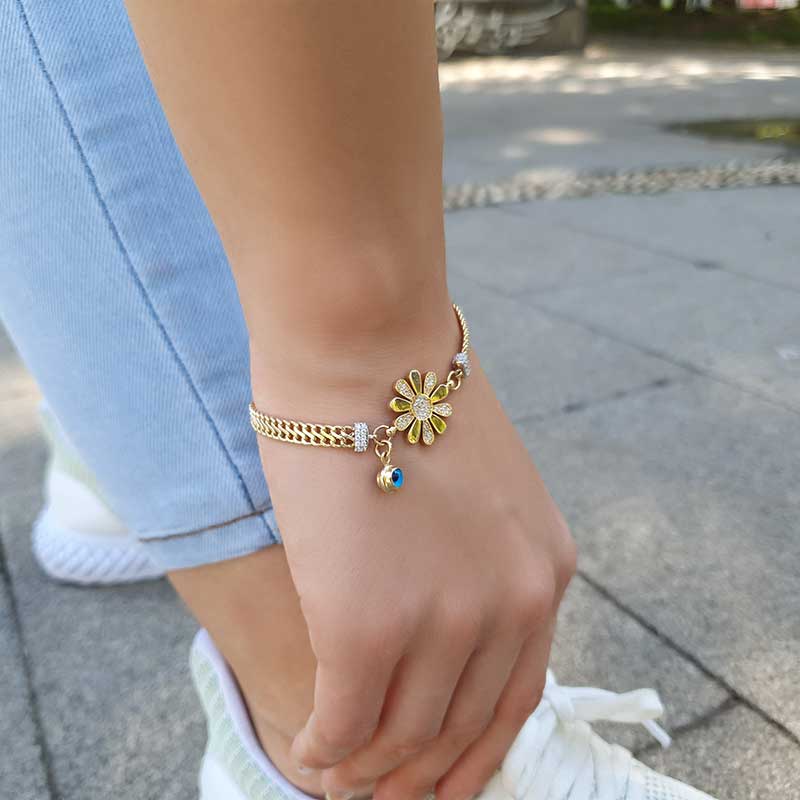 14 Ayar Altın Taşlı Çiçek Figürlü Bileklik