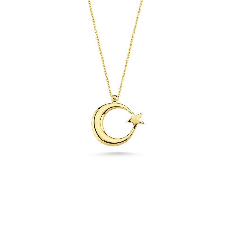 14 Ayar Altın Taşsız Ayyıldız Kolye