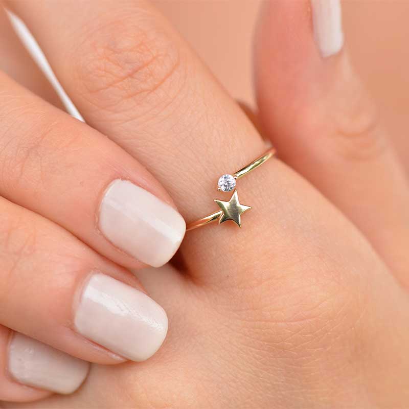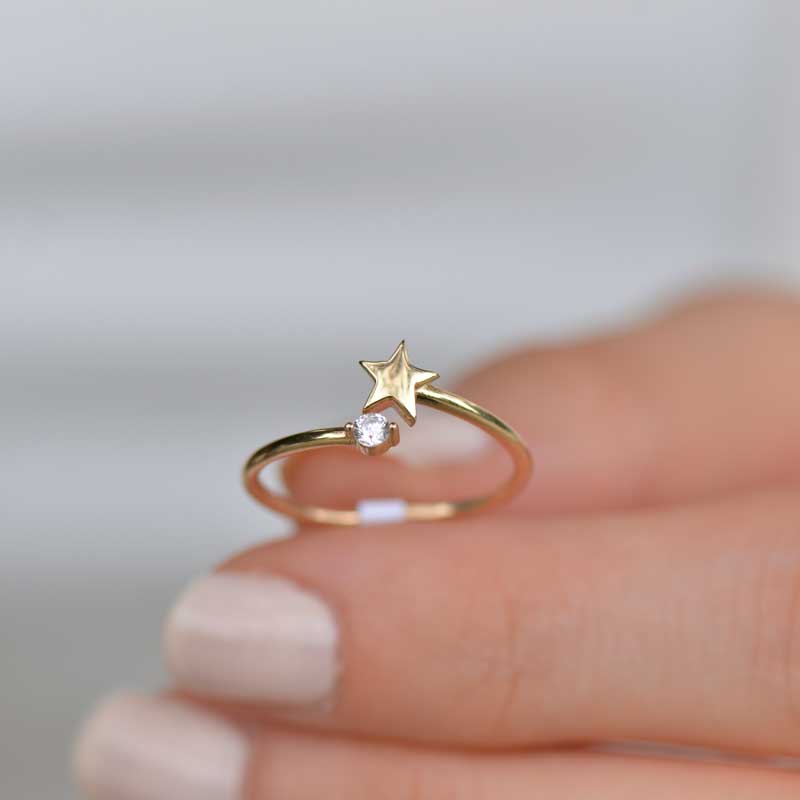14 Ayar Altın Tektaş Yıldız Figürlü Yüzük