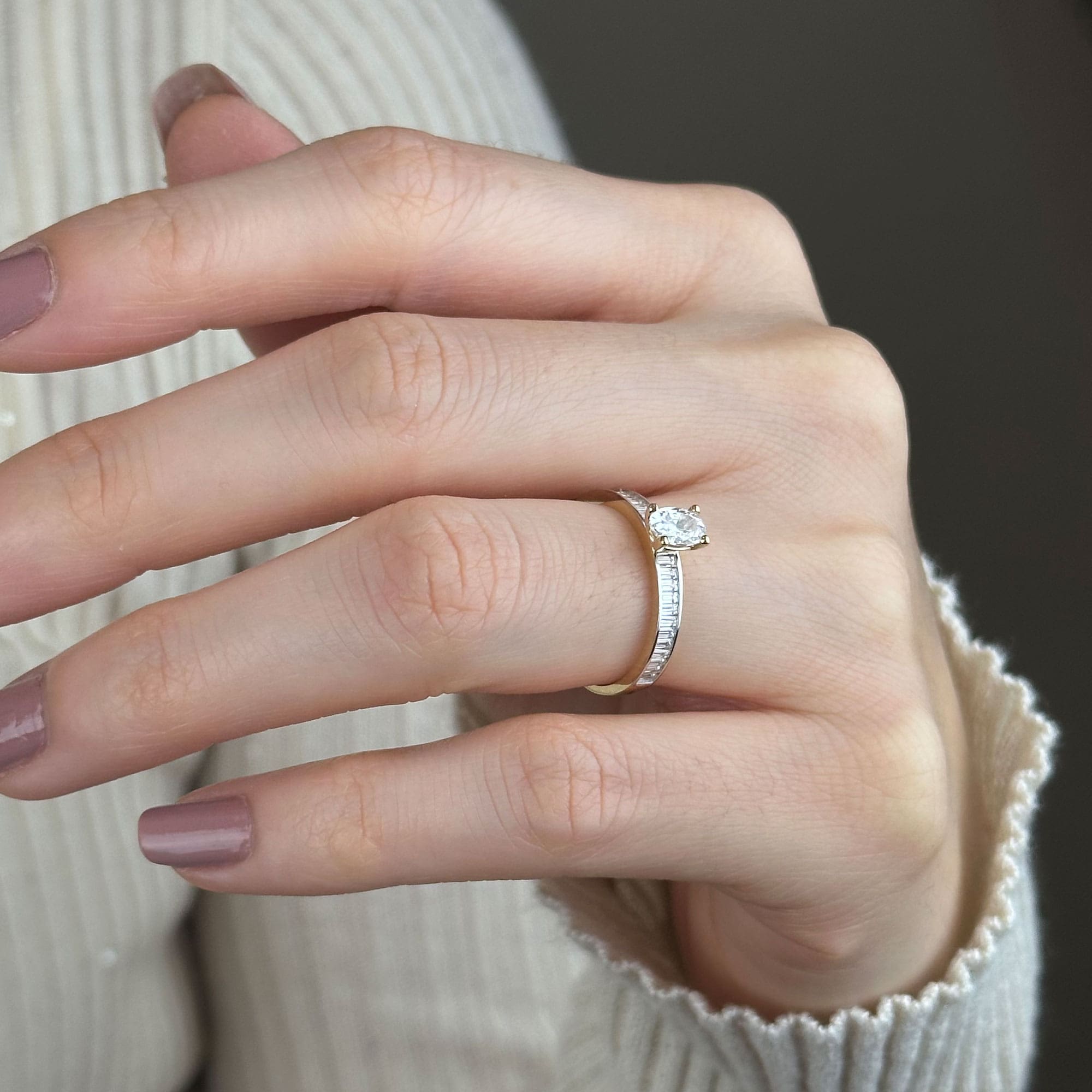 Zarafeti ve sadeliği bir arada sunan 14 ayar altın tektaş yüzük, klasik ve zamansız tasarımıyla her stile uyum sağlar. Günlük kullanımdan özel davetlere kadar rahatlıkla tercih edilebilen bu tek taş yüzük, parlak taş detayı ve kaliteli işçiliğiyle dikkat çeker.
