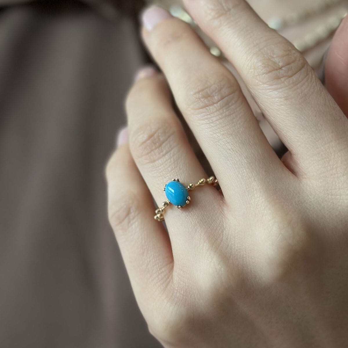 14 Ayar Altın Vintage Tasarım Firuze Taşlı Yüzük