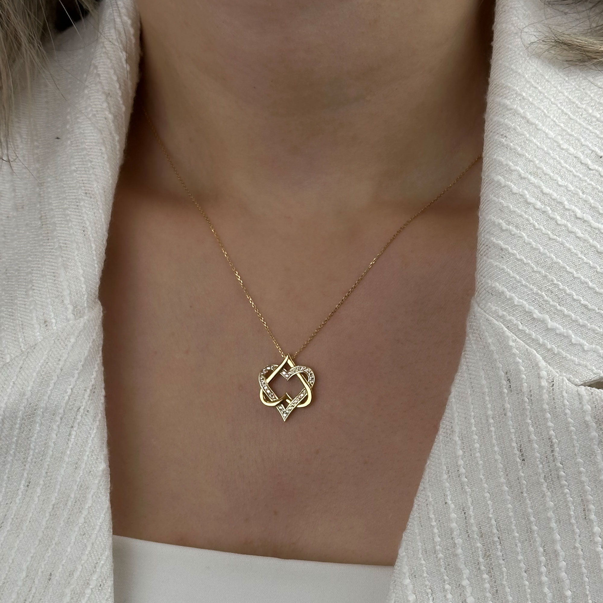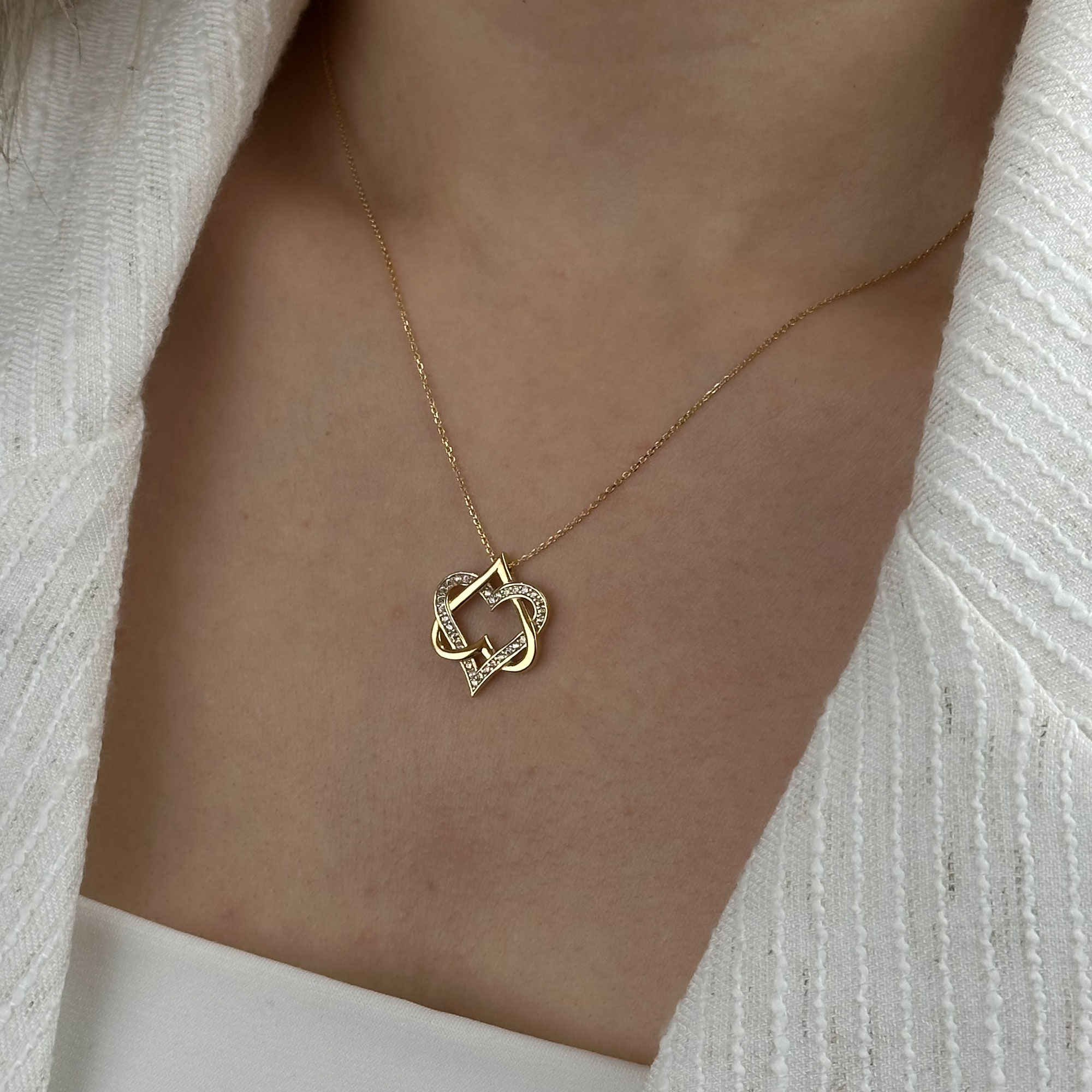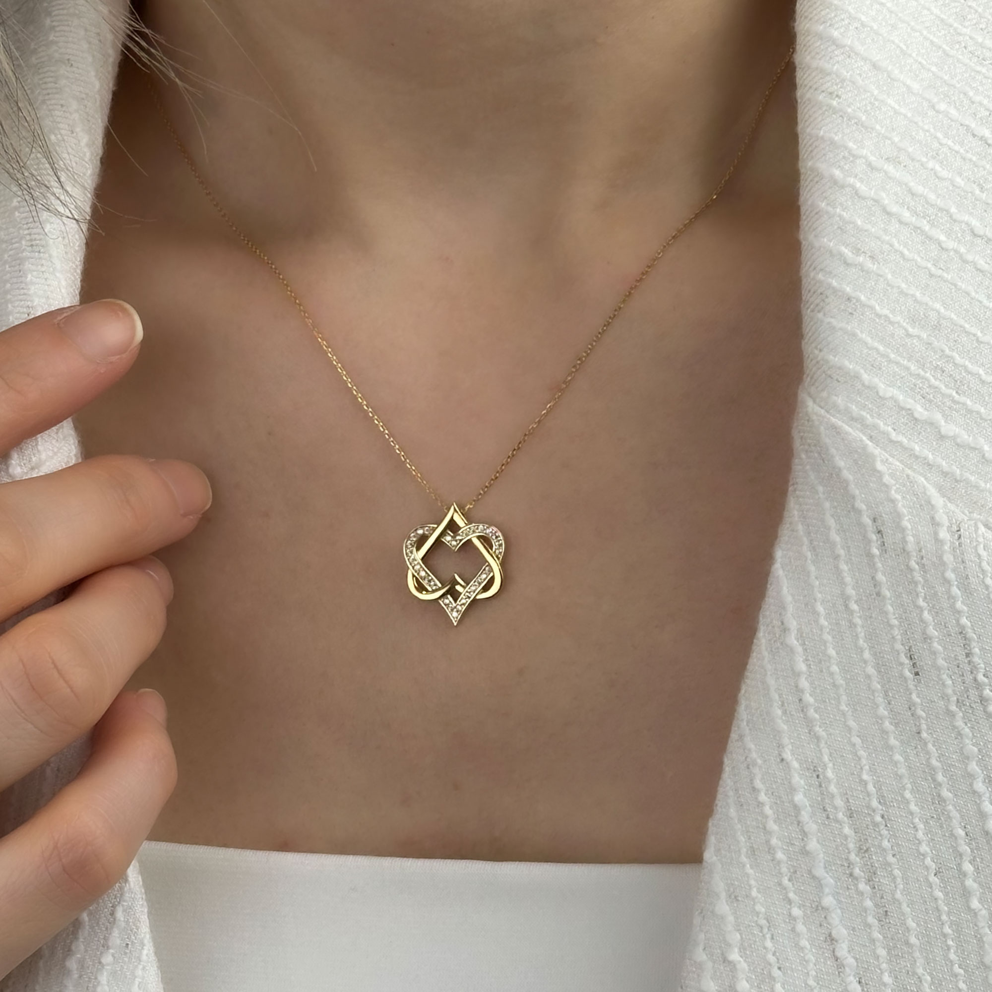 Kalp kolye, sevgi ve bağlılığı simgeleyen tasarımıyla anlamı güçlü hediye seçenekleri arasında yer alır. 14 ayar altın ile üretilen bu model, çift kalpli kolye formu ve taş detaylı görünümüyle zarif ve dikkat çekici bir stil sunar.