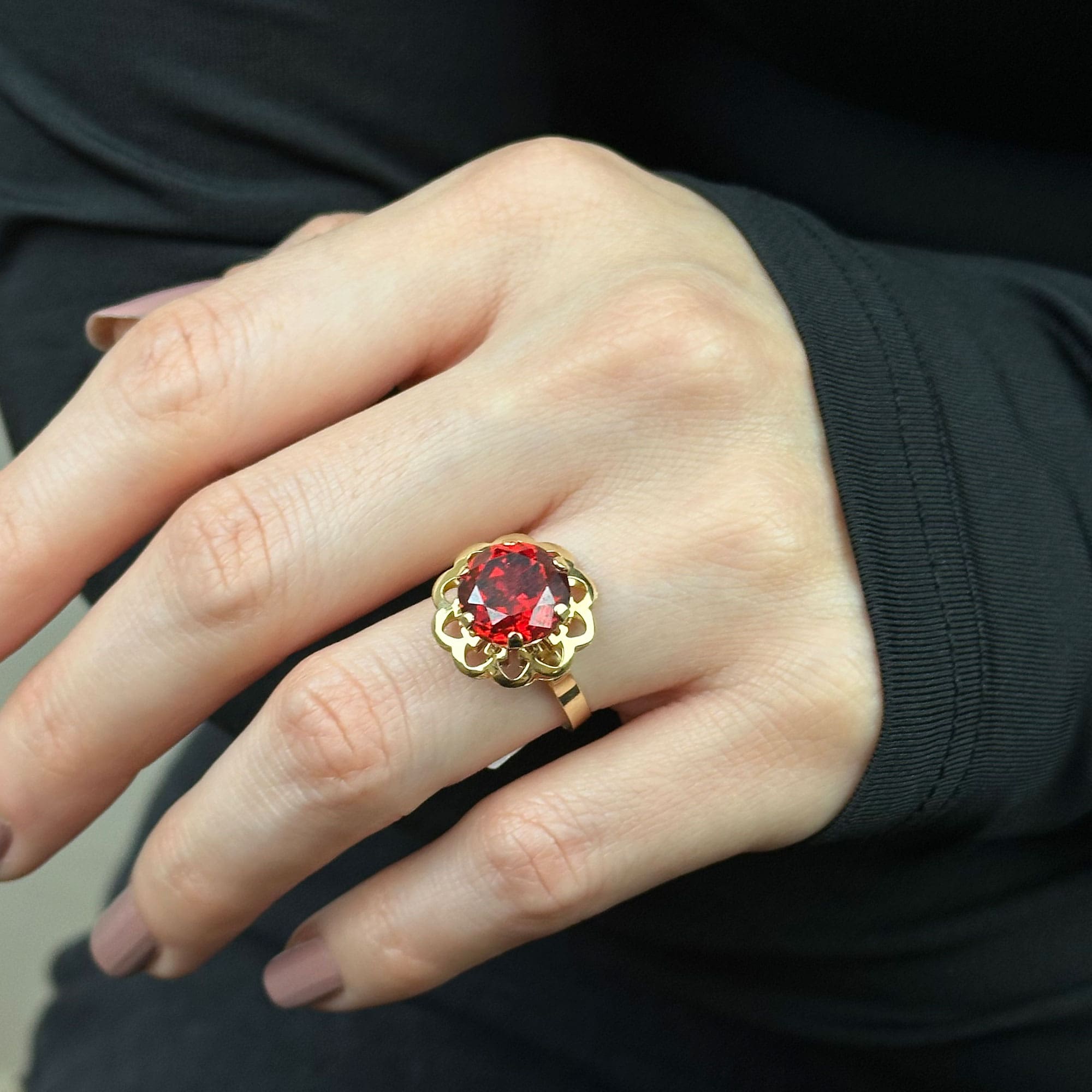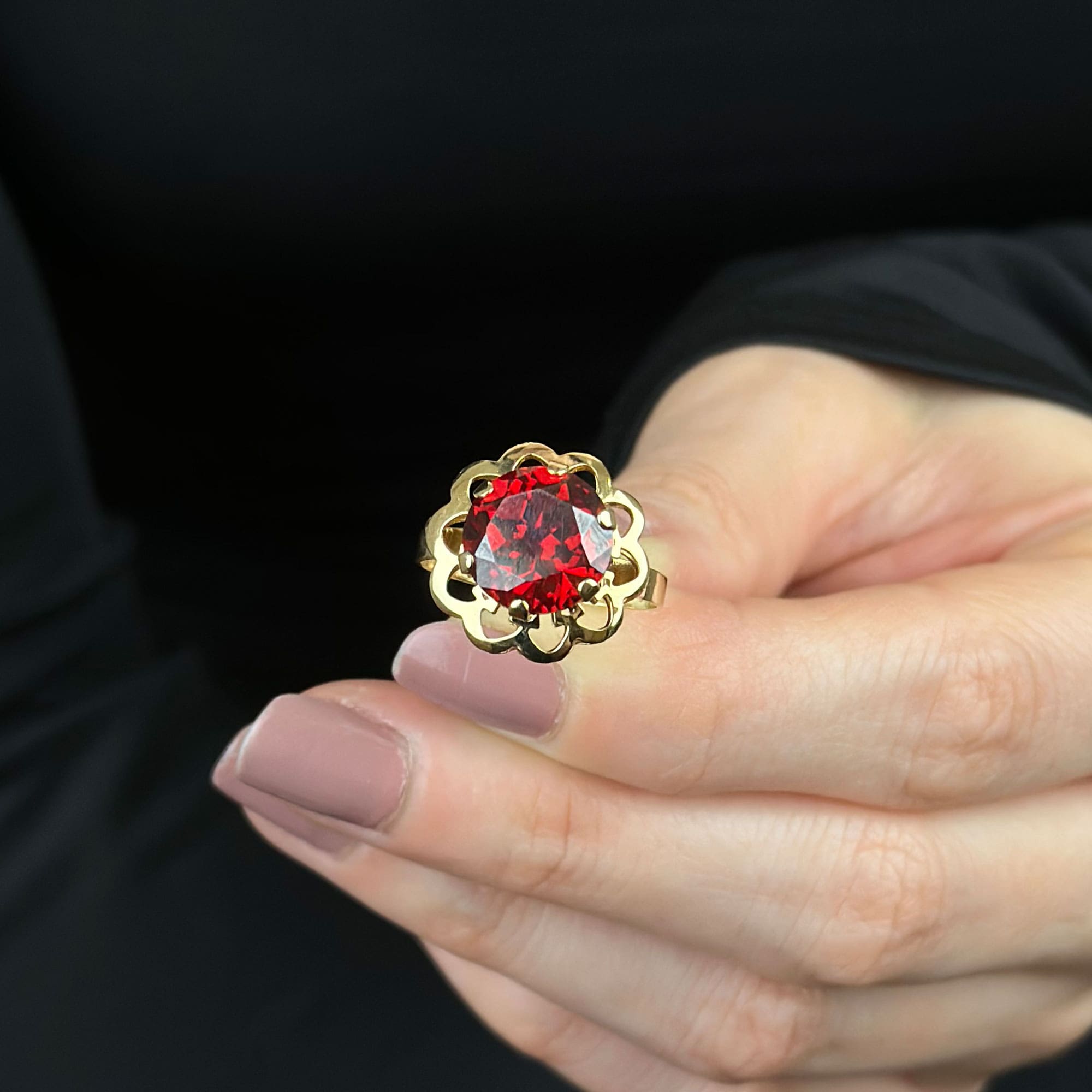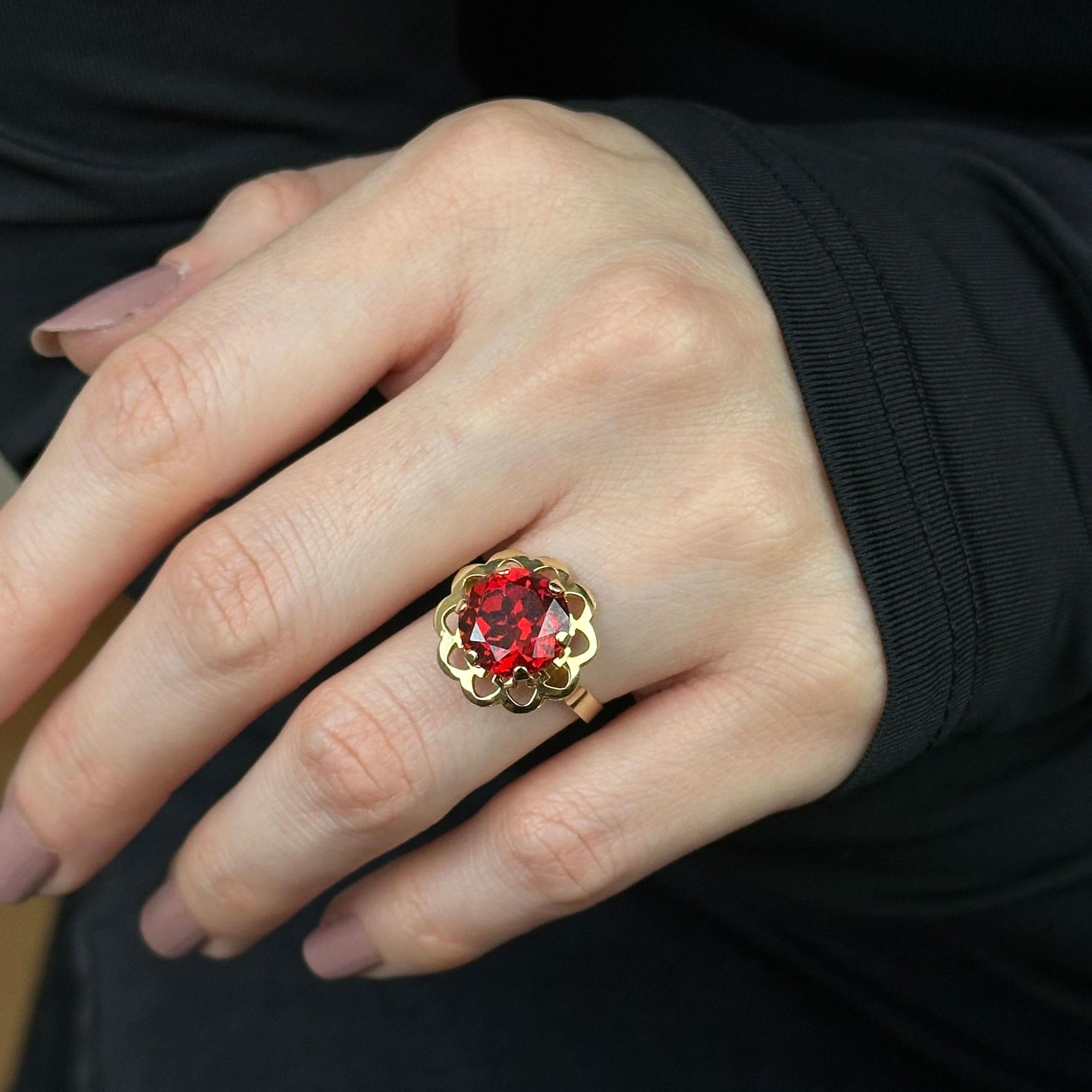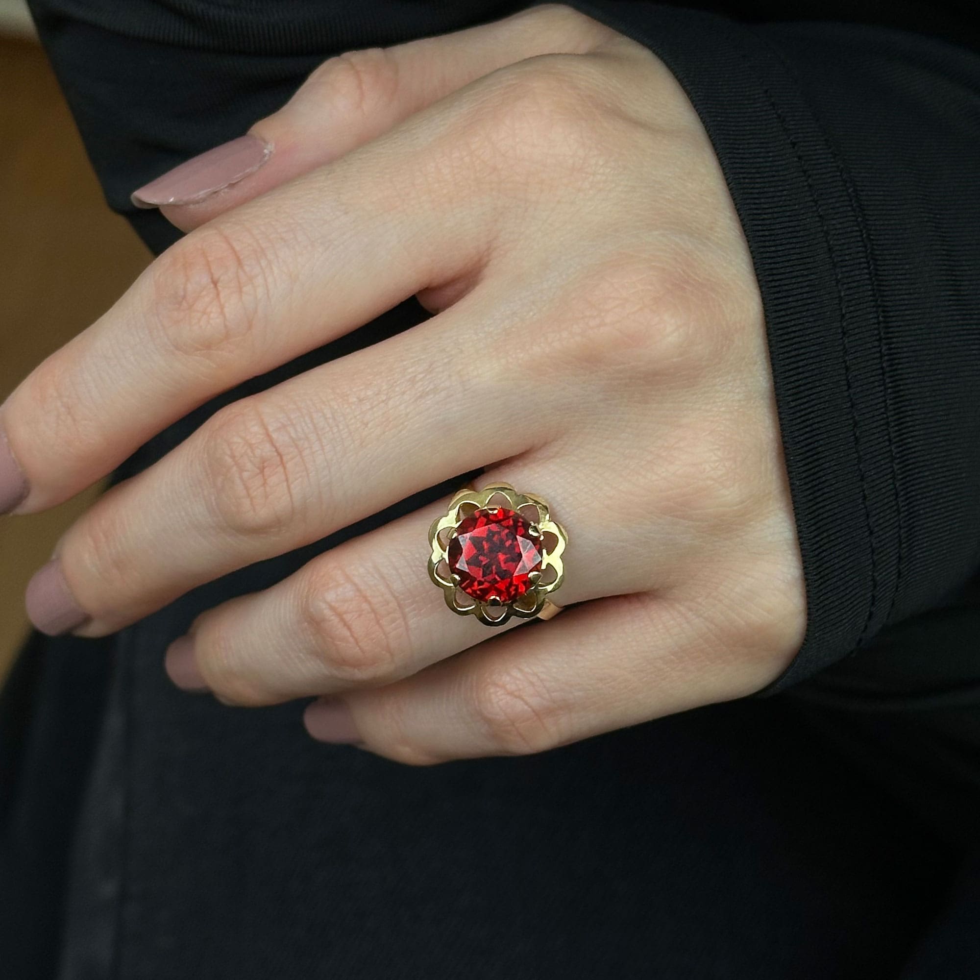 14 Ayar Kırmızı Taşlı Çiçek Yüzük – Zarif Altın Tasarım
