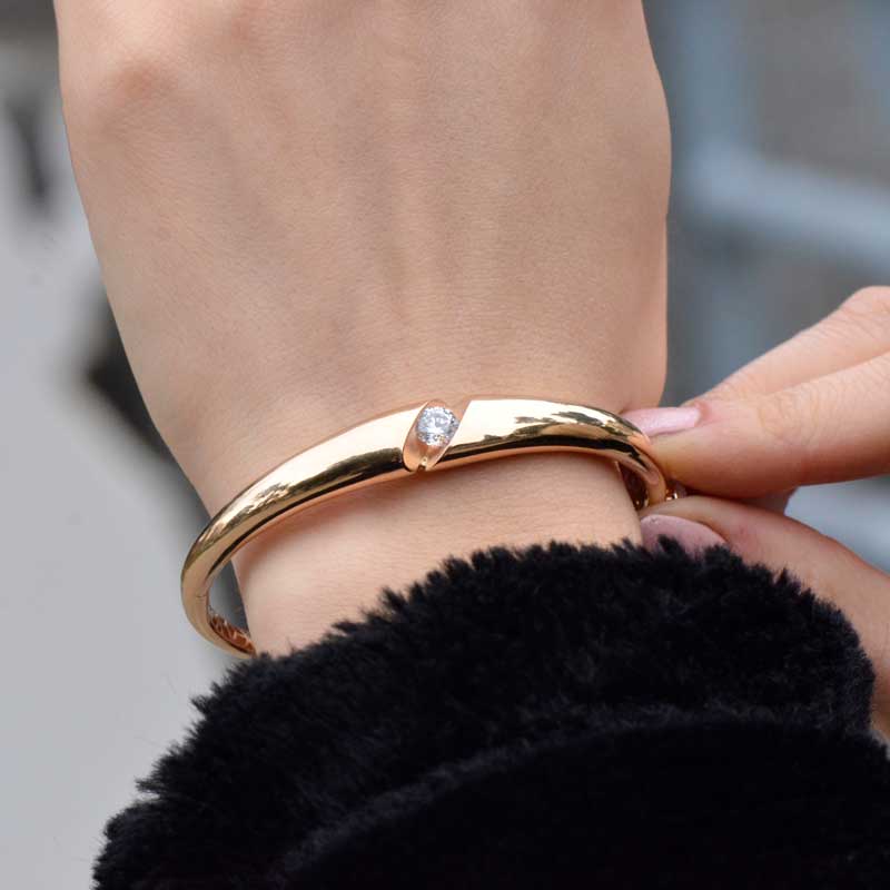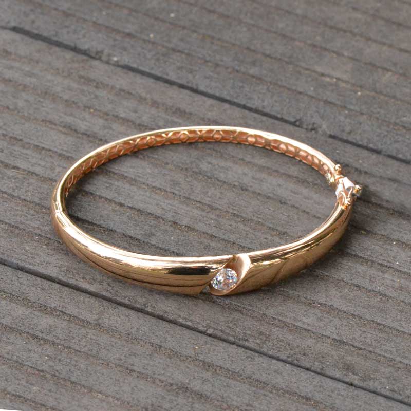14 Ayar Rose Altın Taşlı Kelepçe Bilezik