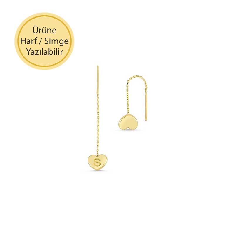 14 Ayar Sade Altın Sallantılı Kalp Küpe