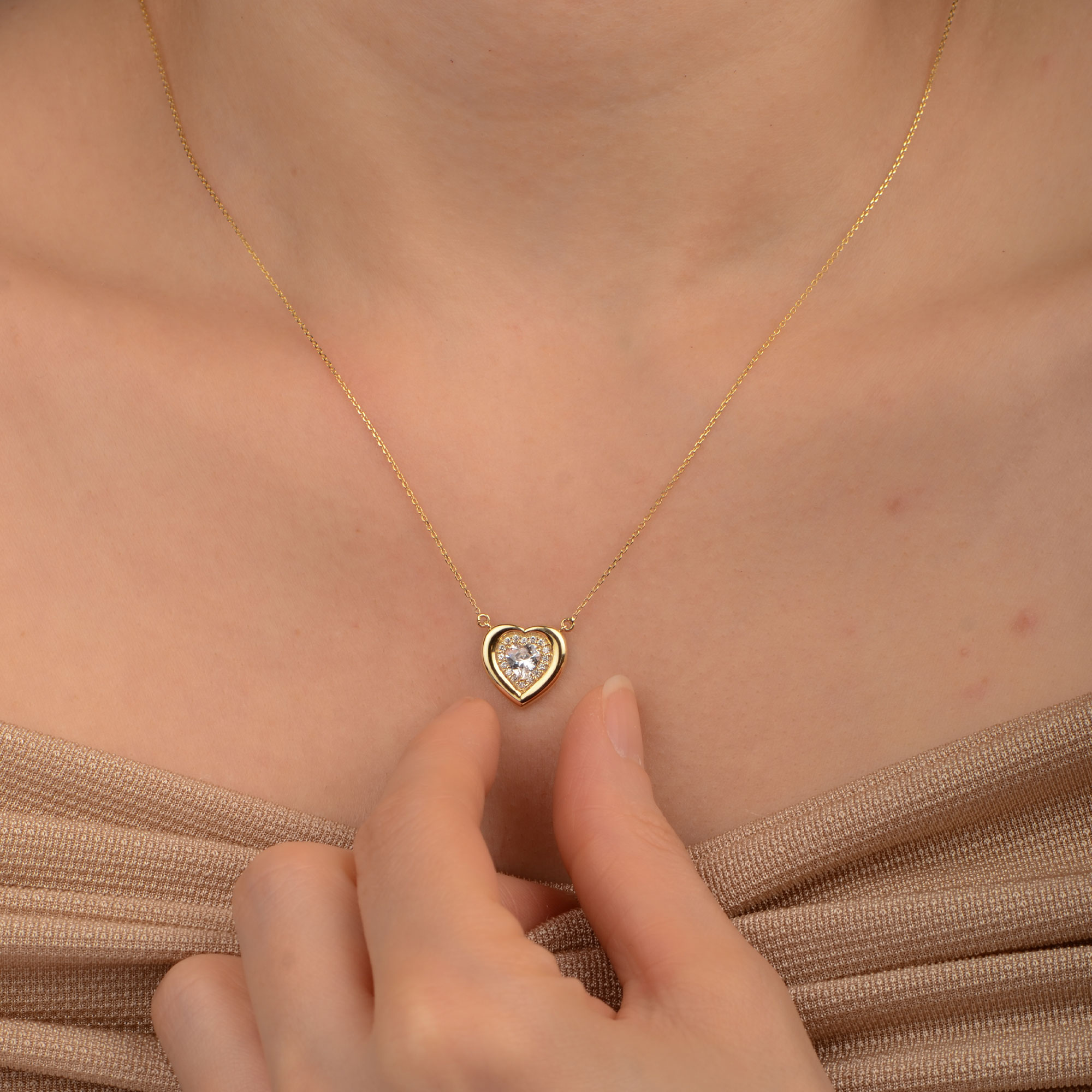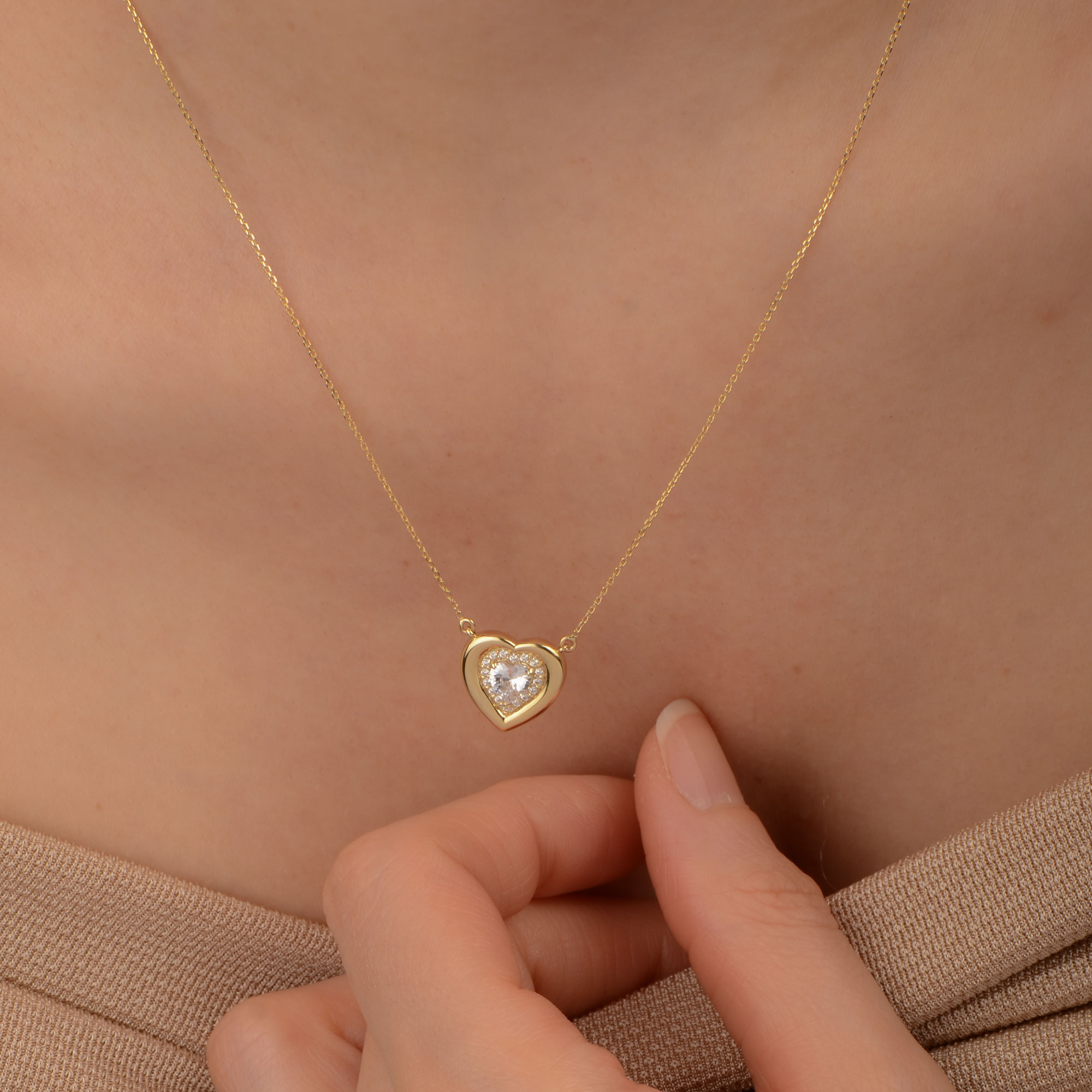 Taşlı kalp kolye modelleri, hem duygusal anlamı hem de estetik görünümü ile en çok tercih edilen tasarımlar arasında yer alır. Bu model; modern tasarım anlayışı, zirkon taşların parlak etkisi ve 14 ayar altının zarif görünümü sayesinde günlük kullanım ile özel anlar arasında güçlü bir denge kurar. Hafif yapısı rahat kullanım sağlarken, gösterişli ama sade duruşu sayesinde farklı stillerle kolayca uyum sağlar.