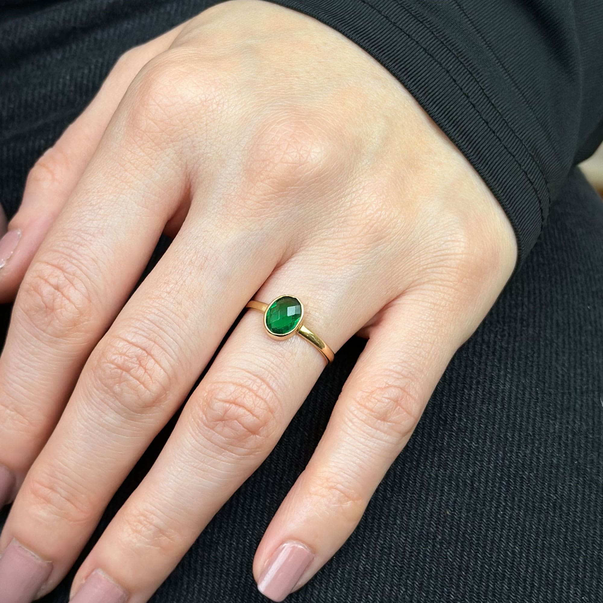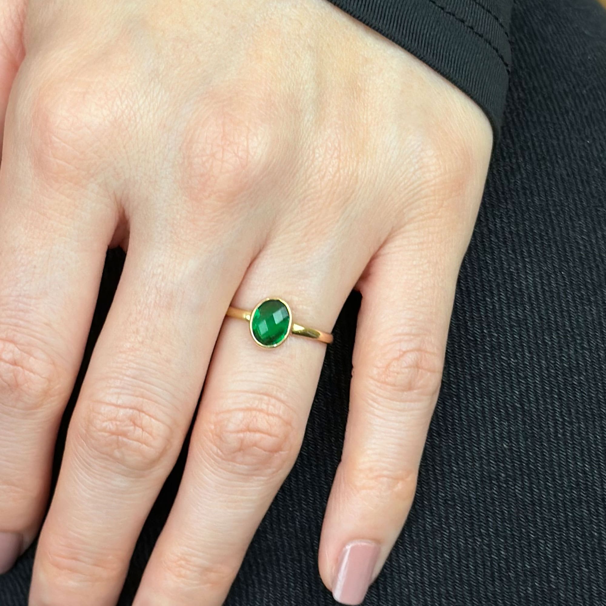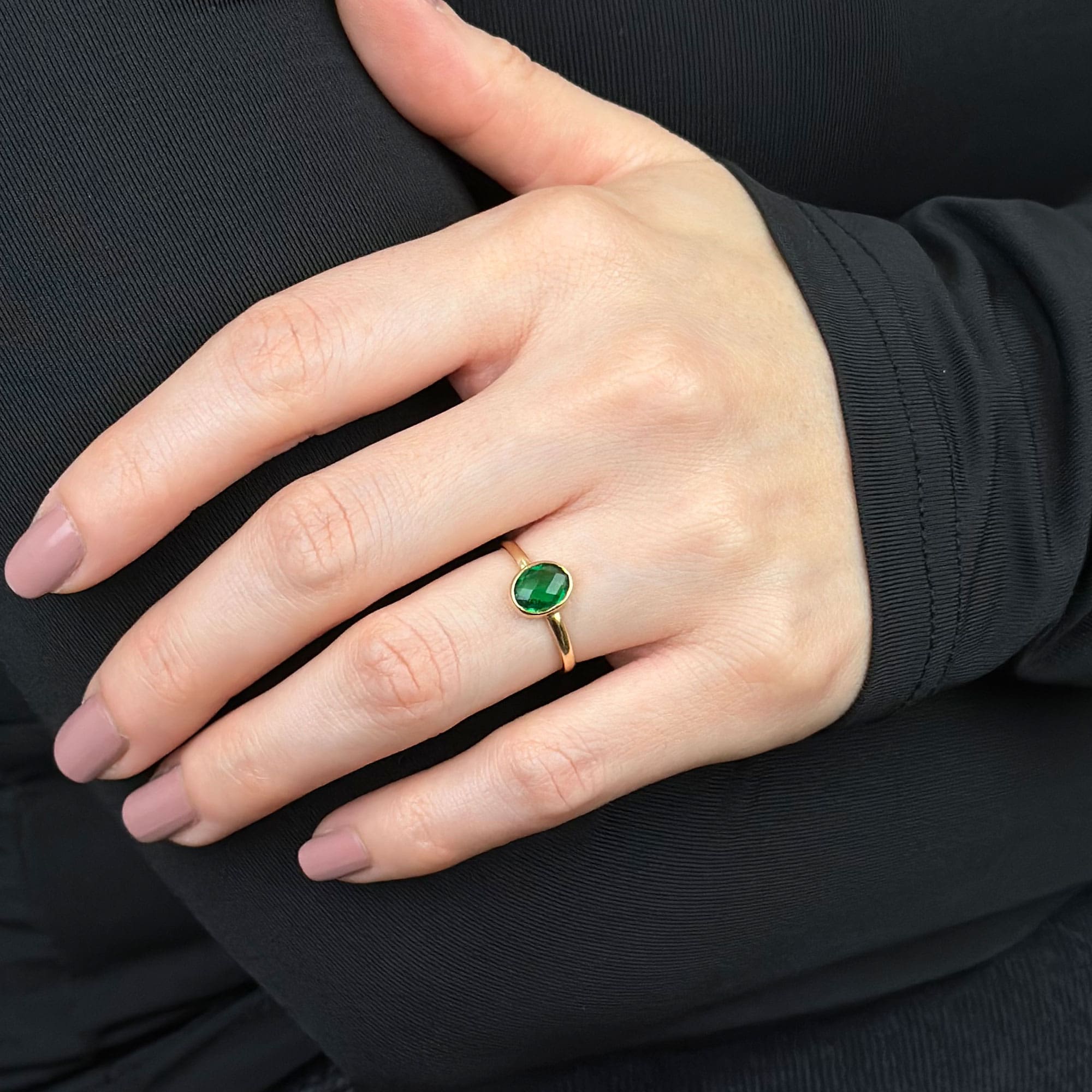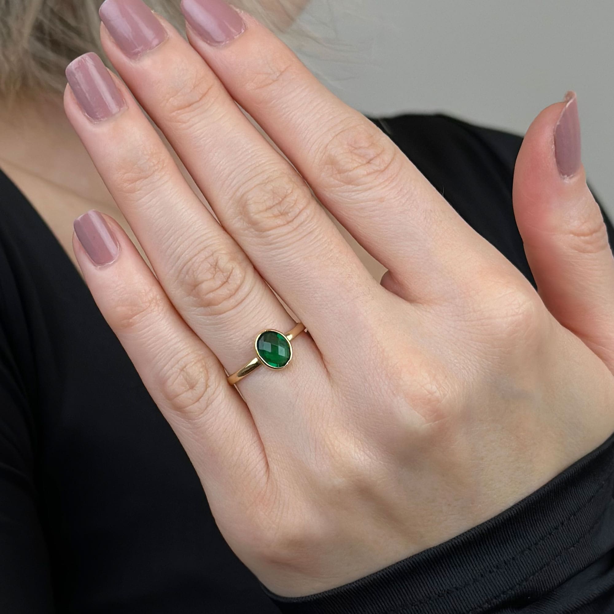 14 Ayar Yeşil Zümrüt Oval Taşlı Yüzük