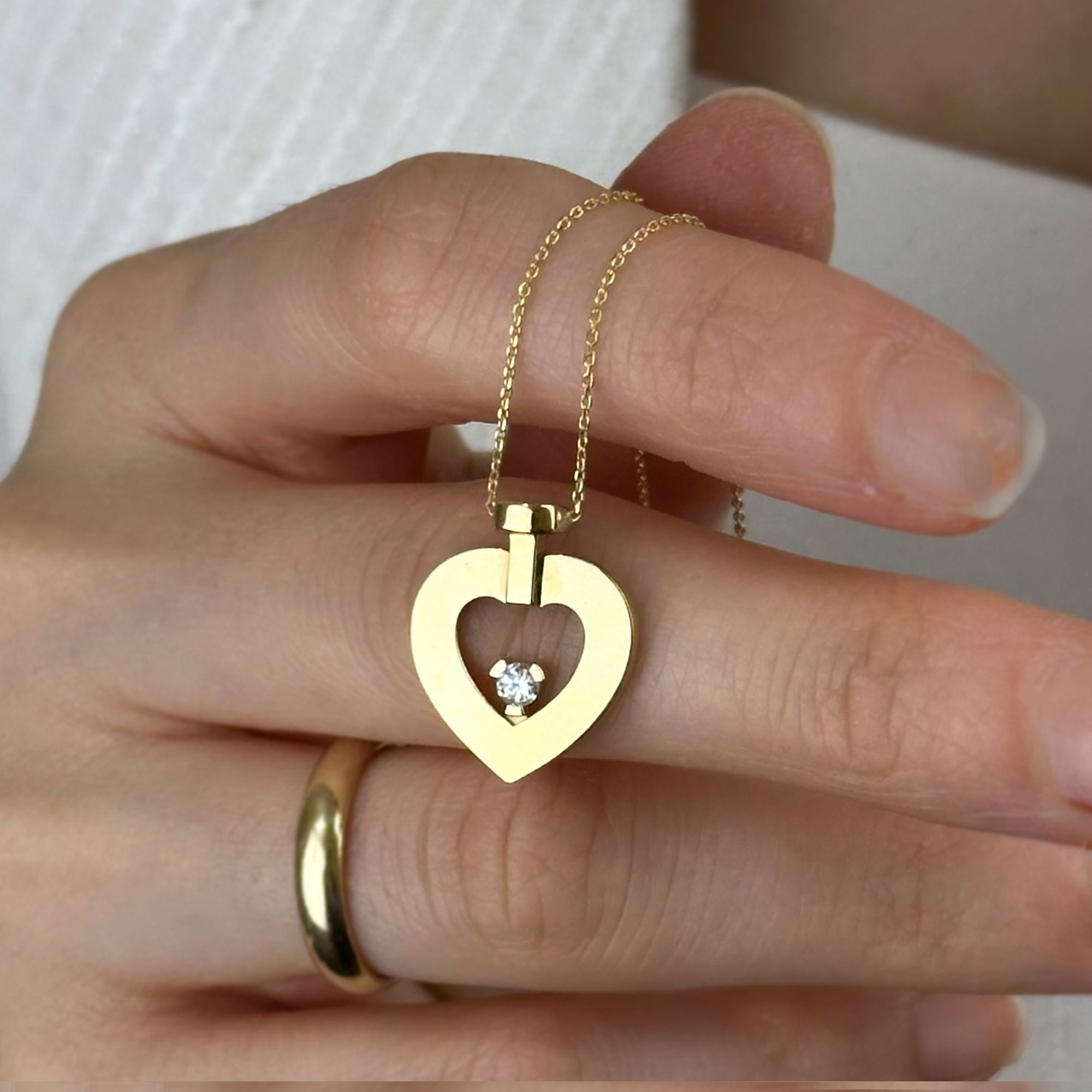 Tek taş kalp kolye arayan kullanıcılar için hem günlük kullanımda hem de özel günlerde rahatlıkla tercih edilebilecek şık bir alternatiftir. Yaklaşık 2.83 gr ağırlığıyla dengeli bir duruş sunarken, sarı altının sıcak tonu tasarımı zamansız hale getirir.