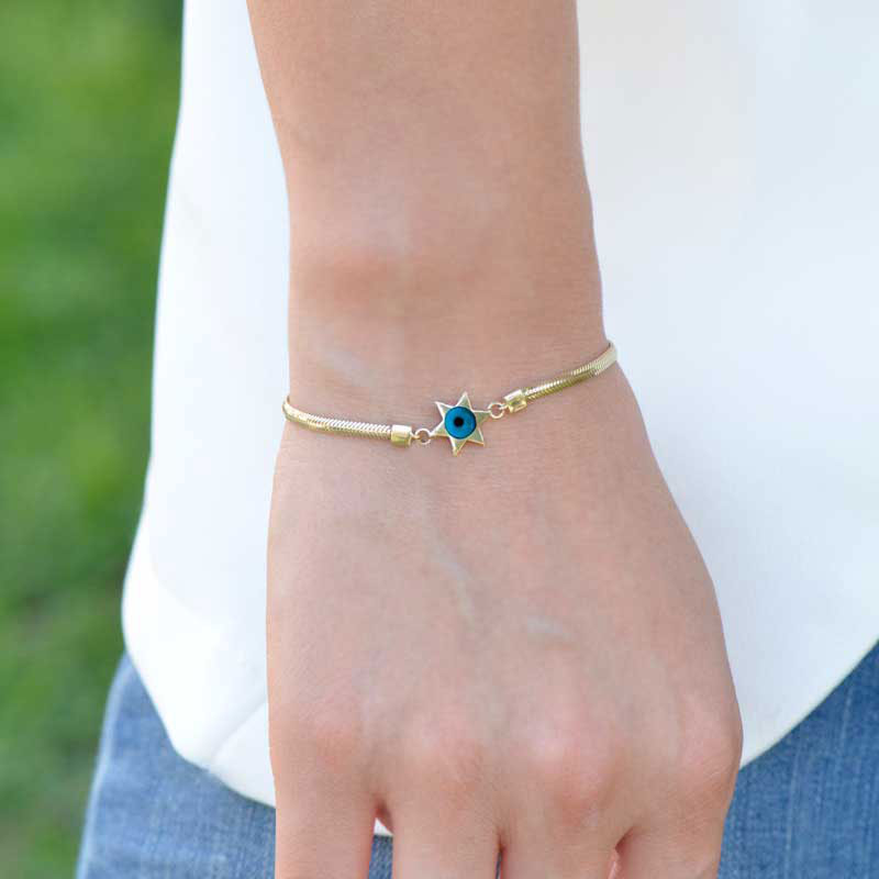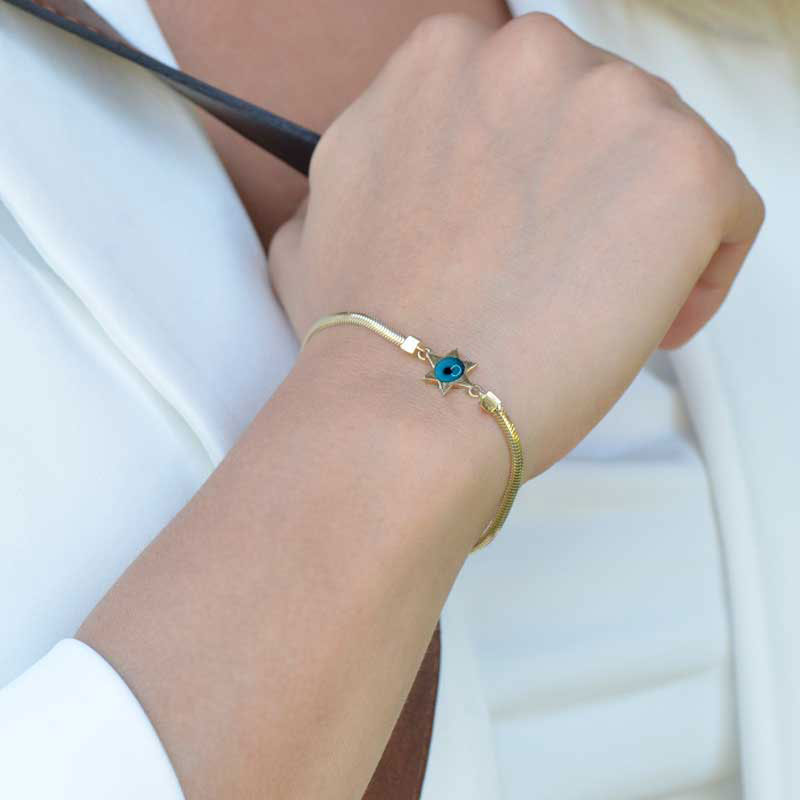 14k Altın Balık Sırtı Yıldızlı Bileklik