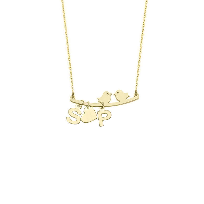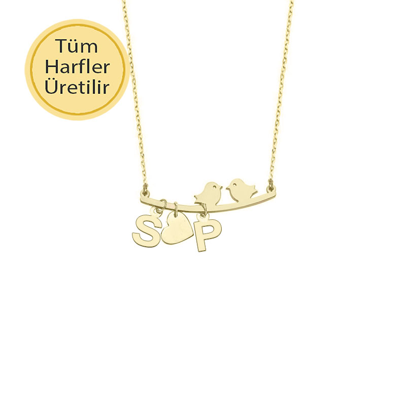 14k Altın Harfli Kalp ve Kuş Sevgi Kolye
