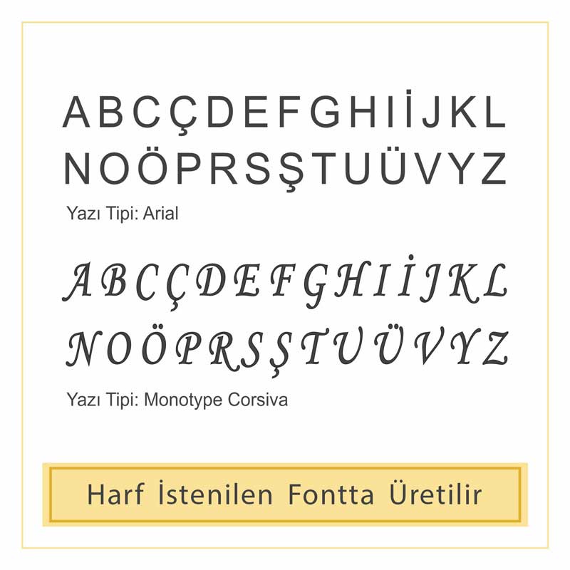 Farklı harf tercihlerinizi sipariş notu olarak iletebilirsiniz.