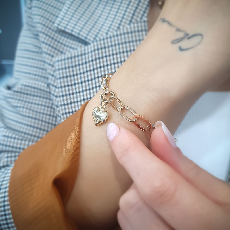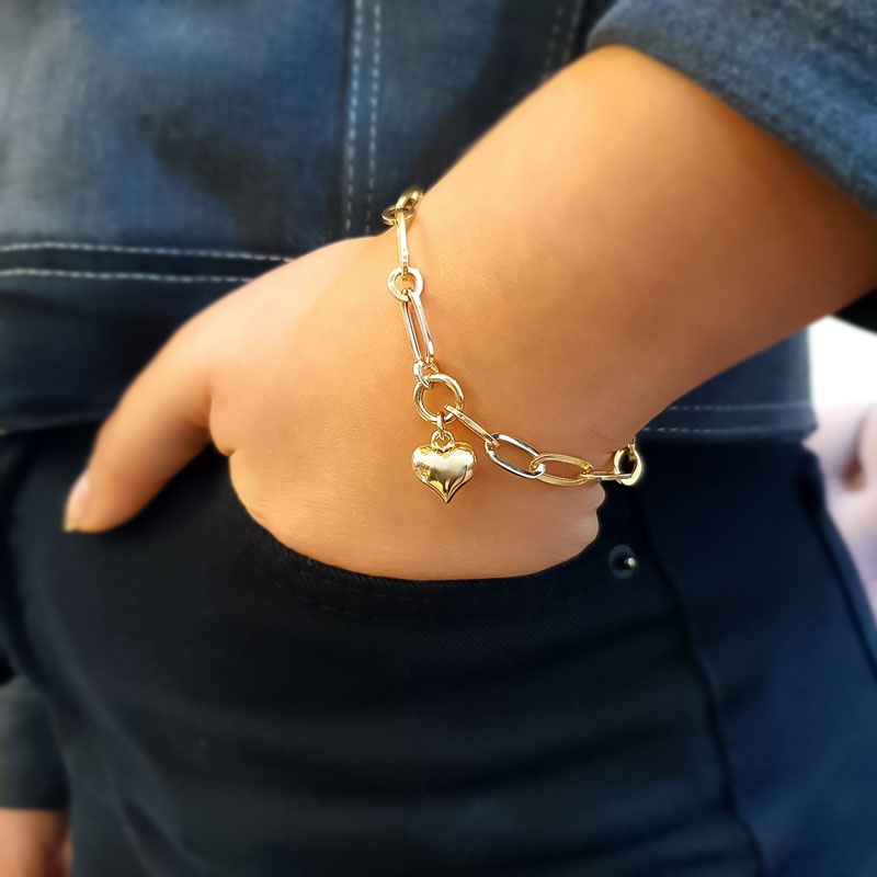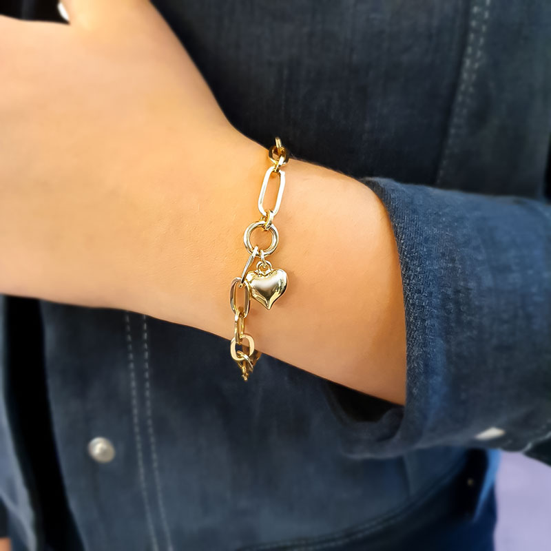 14k Altın Kalpli Ataş Zincir Bileklik