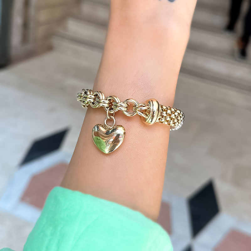 14k Altın Kalpli Cetaş Eterna Sevgi Bileklik