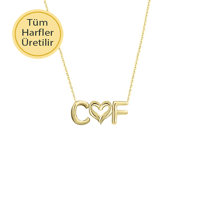 14k Altın Kalpli Çift Harf İsim Kolye
