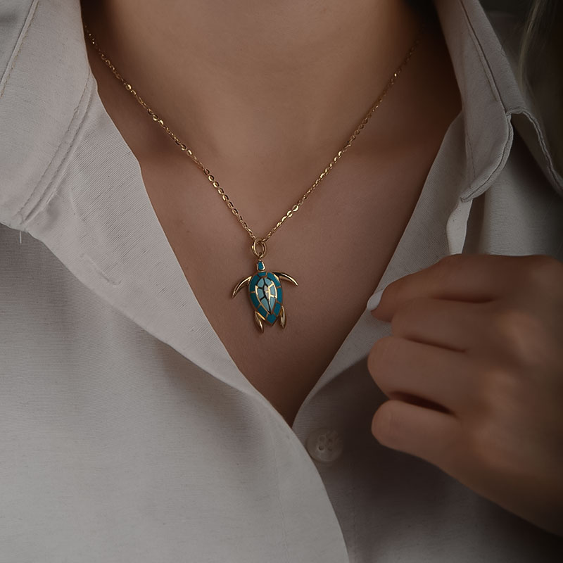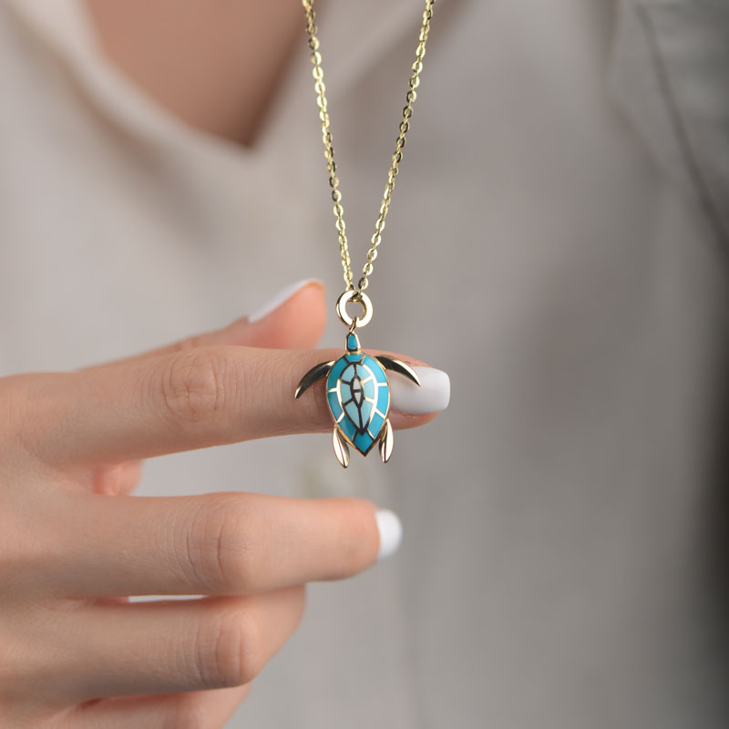 14k Altın Kaplumbağa Model Kolye