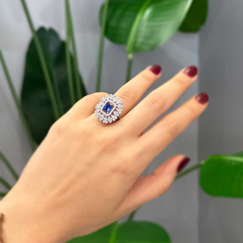 14k Altın Mavi Taşlı Charlotte Yüzük