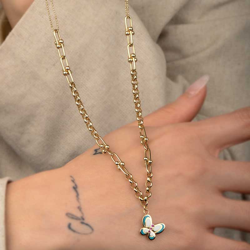 14k Yıldız Figürlü Taşlı Plaka Altın Kolye