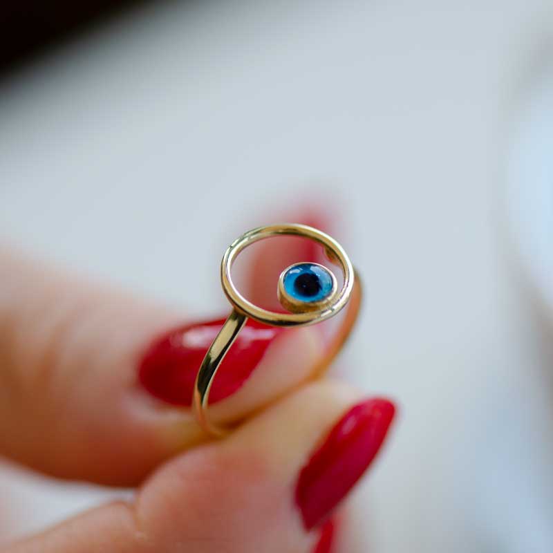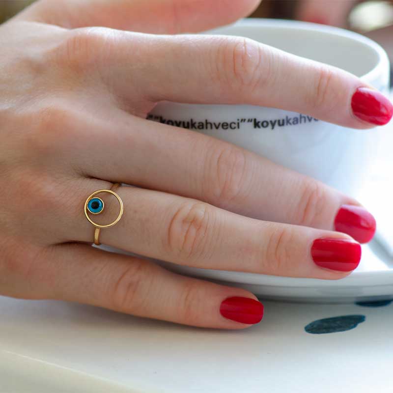 14k Altın Nazar Boncuklu Eklem Yüzük