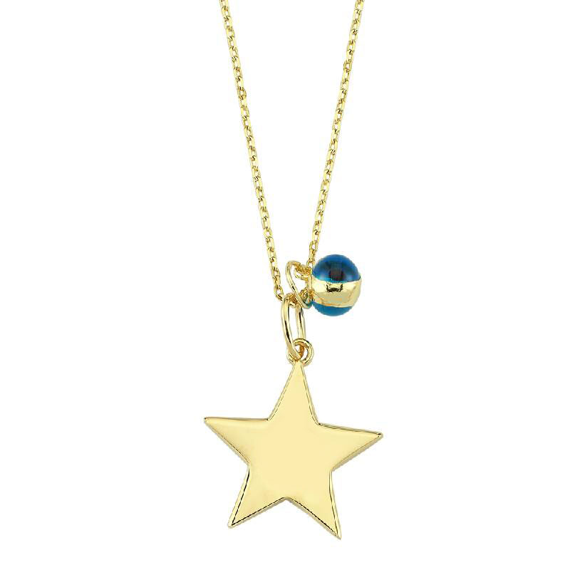 14k Altın Nazar Boncuklu Yıldız Kolye - 1
