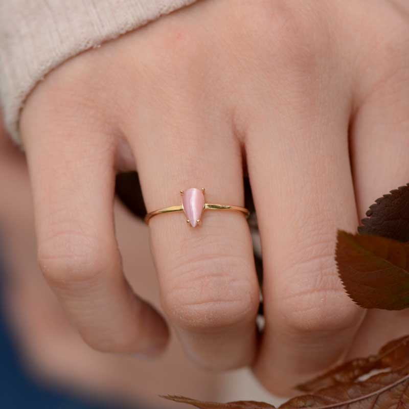 14k Altın Pembe Damla Taşlı Yüzük