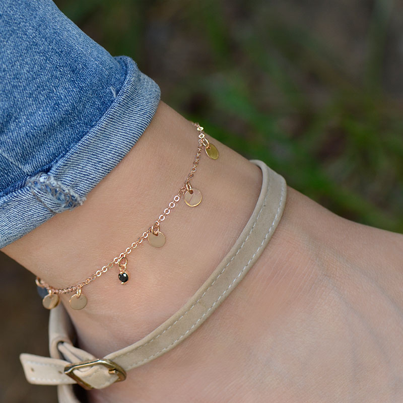 14k Altın Siyah Taşlı Pullu Halhal