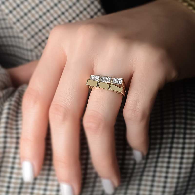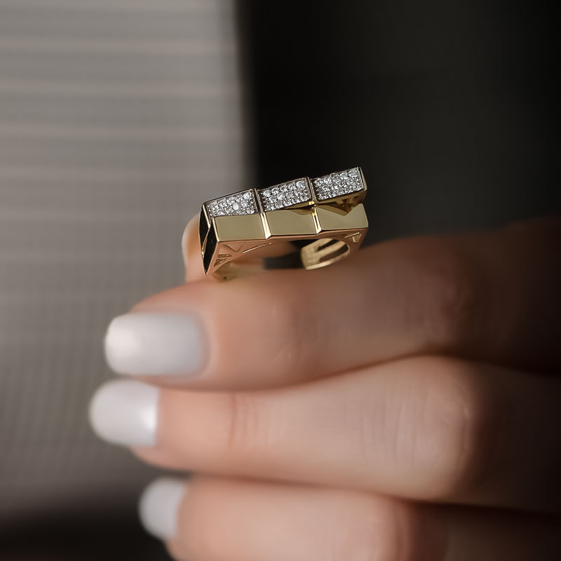 14k Altın Taşlı Geometrik Yüzük